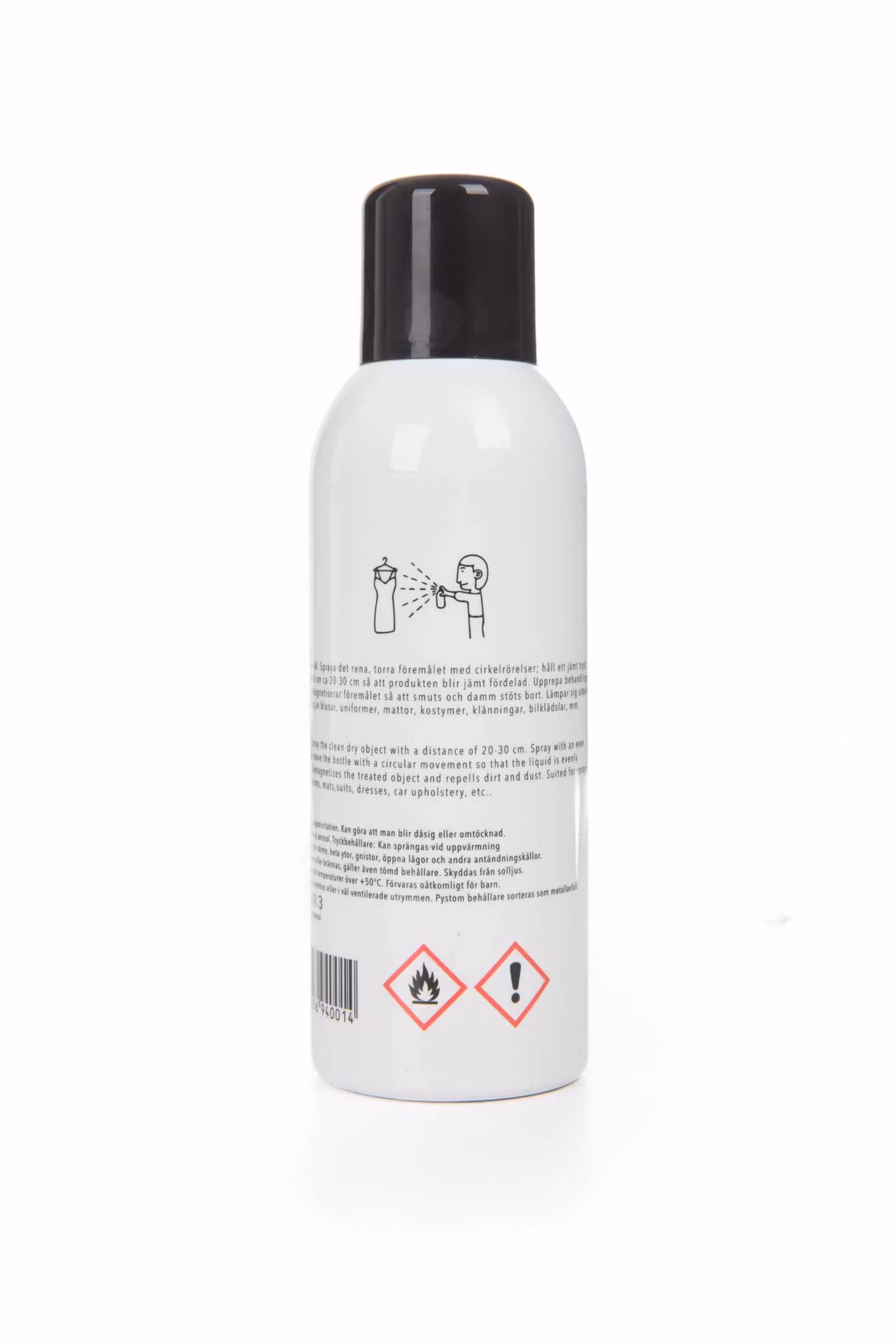 Använd sprayen i ett väl ventilerat rum eller gärna utomhus. Skaka flaskan väl. Spraya det rena, torra föremålet med cirkelrörelser; håll ett jämt tryck och ett avstånd om ca 20-30 cm så att produkten blir jämt fördelad. Upprepa behandlingen vid behov.