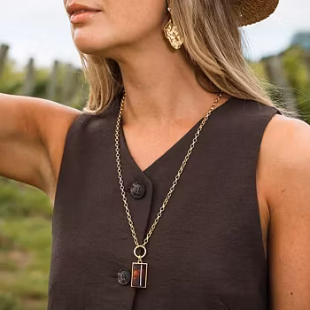 Como Necklace brown gold 499 kr I lager. Lägg i korgen Lagersaldo: 2 Artikelnummer: JN198BRGO Leverantör: BY JOLIMA Produktbeskrivning Längre halsband i guld med en brun sten.
