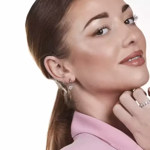 Sötaste örhängena med ett hängande amour hjärta som du gärna bär alla dagar i veckan och är en uppskattad present. Material: Kirurgiskt stål. Sten: Cubic zirkonia i klara stenar Mått: Ringens diameter 10 mm, hjärtats mått är 7 mm x 5 mm. total längd 18 mm Allergisäkert