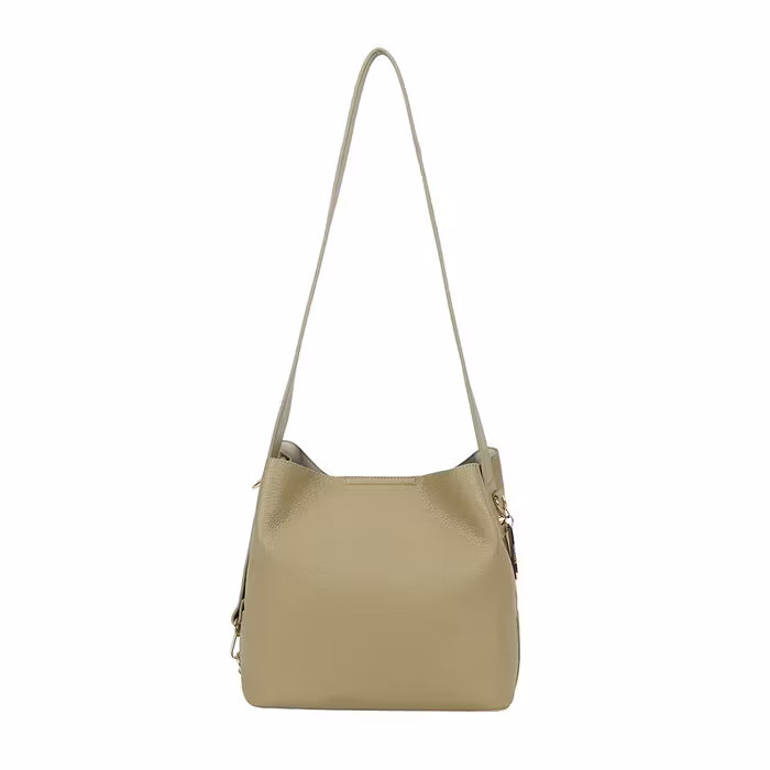 Stilren bucket-väska från Ulrika Design som kombinerar funktion och elegans. Den justerbara axelremmen gör att väskan kan bäras i två olika längder, vilket ger både komfort och flexibilitet. Invändigt finns fem praktiska fack, inklusive ett med dragkedja, för att enkelt organisera dina tillhörigheter. Denna väska är perfekt för dig som vill ha en snygg och mångsidig vardagsväska.