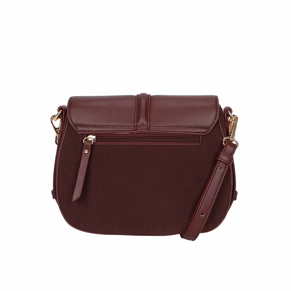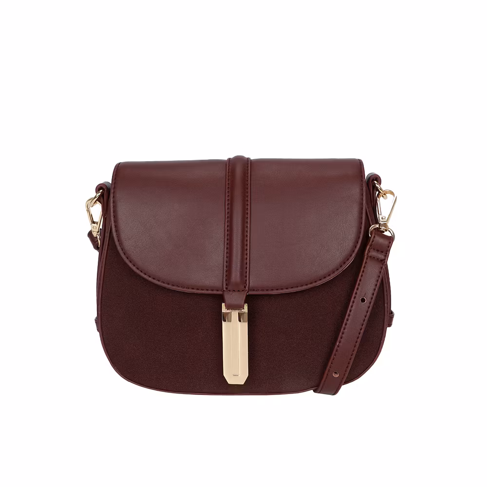 Elegant och tidlös sadelväska/handväska i vinröd skinnimitation med justerbar axelrem. Väskan har en stilren design med guldfärgat metallspänne som ger en exklusiv och feminin känsla. Perfekt för både vardag och fest när du vill bära med dig det viktigaste utan att tumma på stilen.
