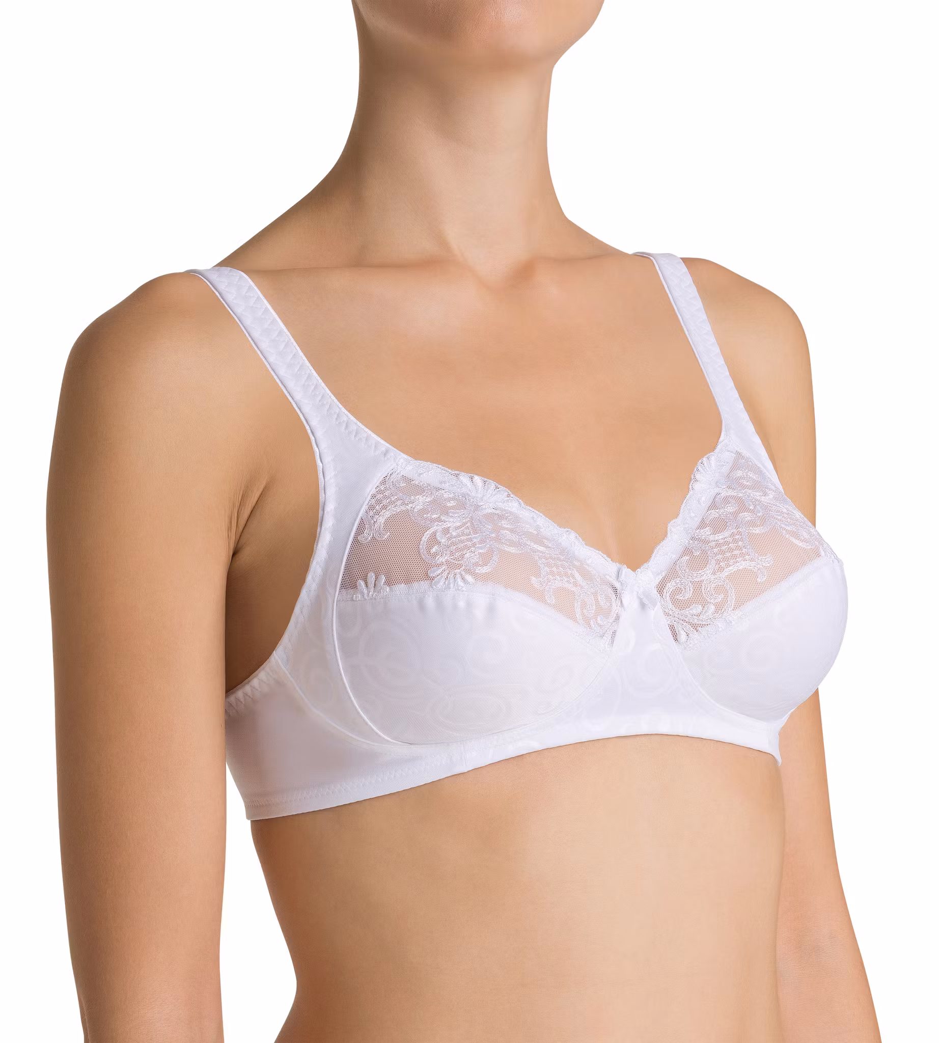 Njut av oöverträffad komfort och stil med Riccarda W från Triumph. Denna eleganta vita bygel-bh kombinerar exklusivt broderade detaljer med optimal passform, skapad för stabilitet och säkerhet – även för den större bysten. Riccarda W är designad med en innovativ mix av polyester, polyamid och elastan som både andas och ger huden en behaglig känsla hela dagen. Den formstarka konstruktionen kombineras med en stilfull feminin siluett, vilket gör att du enkelt känner dig bekväm och elegant vid varje tillfälle. Perfekt val för dagligt bruk eller speciella tillfällen.