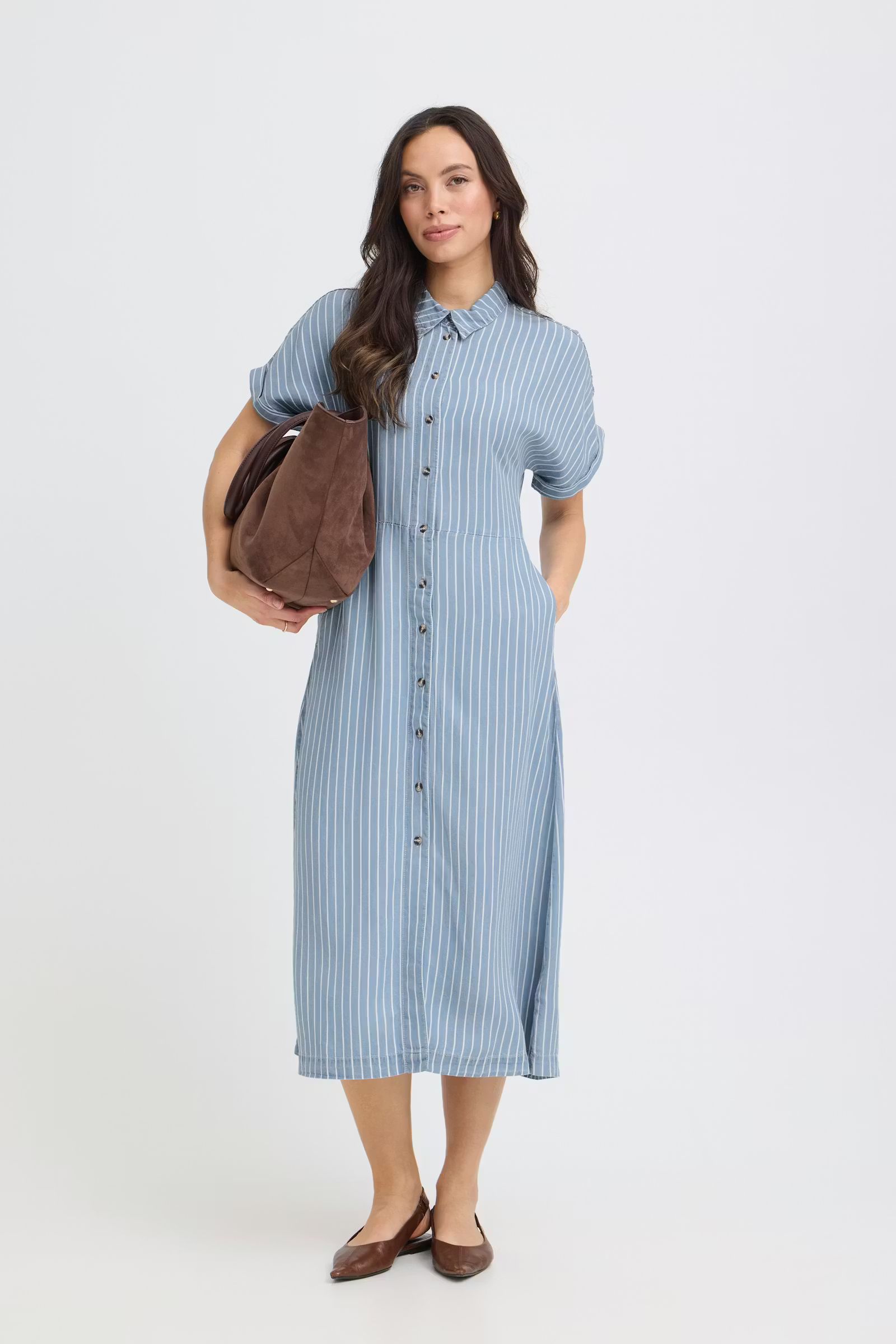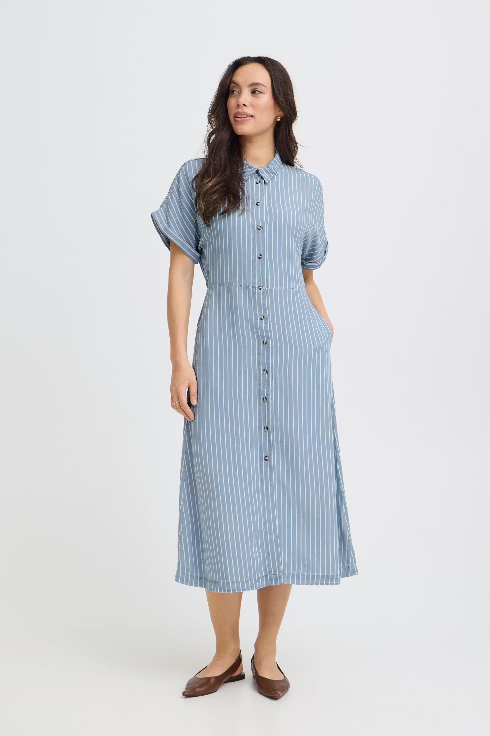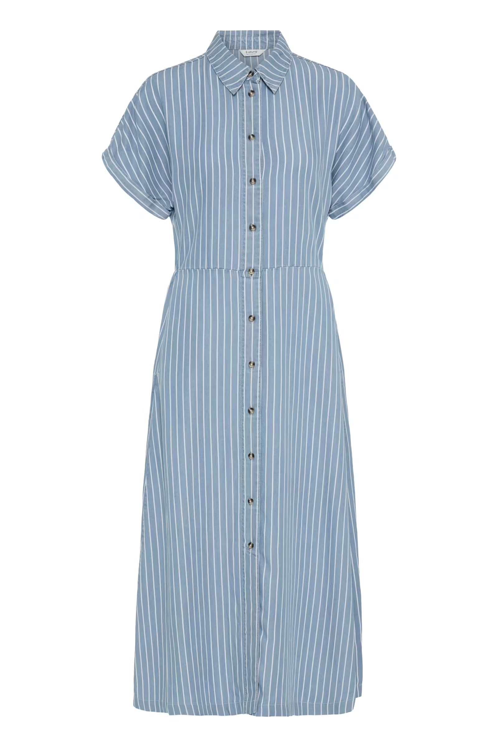Blå skjortklänning med vita ränder 899 kr Storlek 36 38 40 42 44 46 I lager. Lägg i korgen Lagersaldo: Artikelnummer: 1935 Leverantör: B.Young Produktbeskrivning 100% lyocell