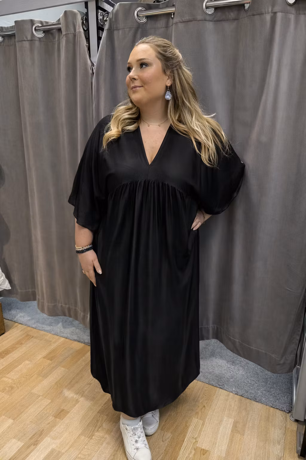 Den lediga och luftiga passformen gör klänningen lika skön som stilfull, perfekt för både vardag och fest. Styla den med klackar och smycken för en uppklädd look eller bär den mer avslappnat med sneakers, sandaler eller boots. En tidlös favorit som enkelt anpassas efter tillfälle.