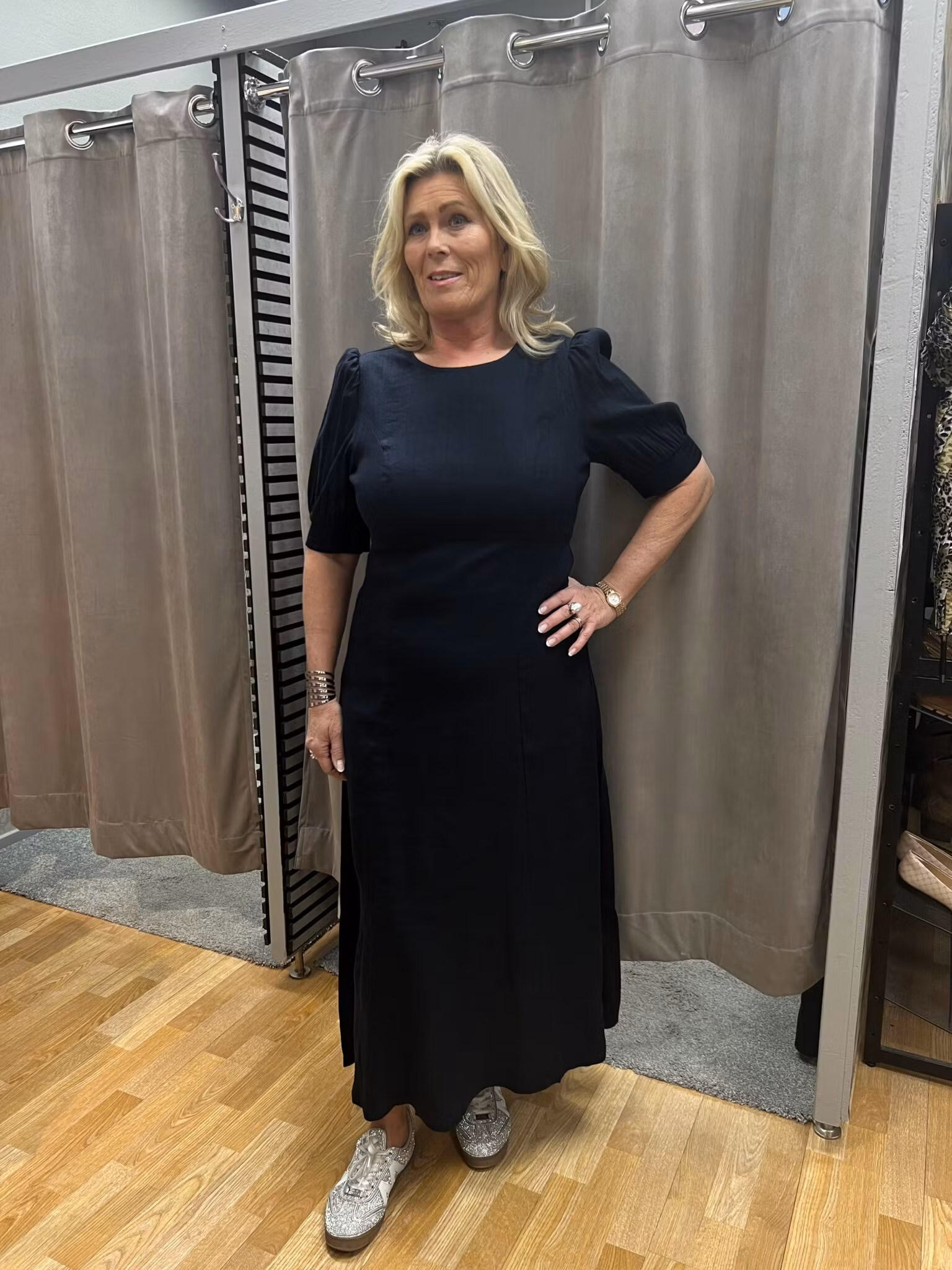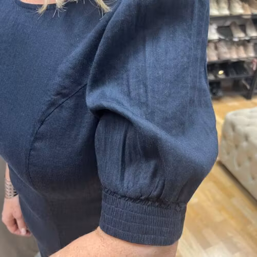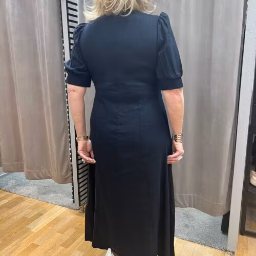 Mörkblå linneklänning 1 399 kr Storlek S M L XL XXL I lager. Lägg i korgen Lagersaldo: Artikelnummer: 97 Leverantör: Pulz Jeans Produktbeskrivning En mörkblå linneklänning med puff ärm.Modellen är 172 cm och bär storlek L.Material: 52% lin, 45% viskos, 3 elastan