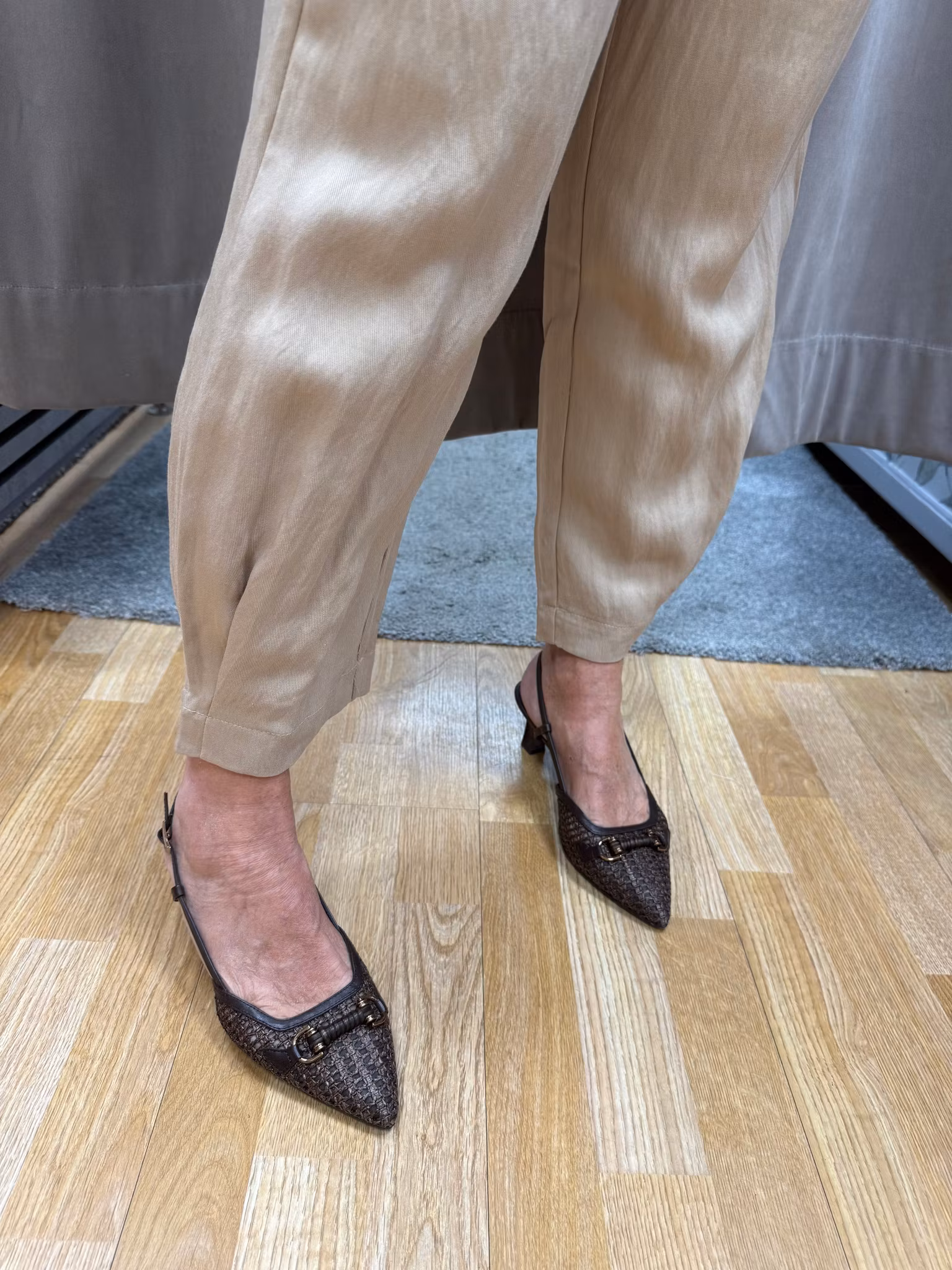 Byxorna har en rak, lätt avsmalnande passform som ger en smickrande silhuett. Den tidlösa beige färgen gör dem enkla att matcha med allt från enkla toppar till blusar och stickat – ett mångsidigt plagg för både vardag och mer uppklädda tillfällen.