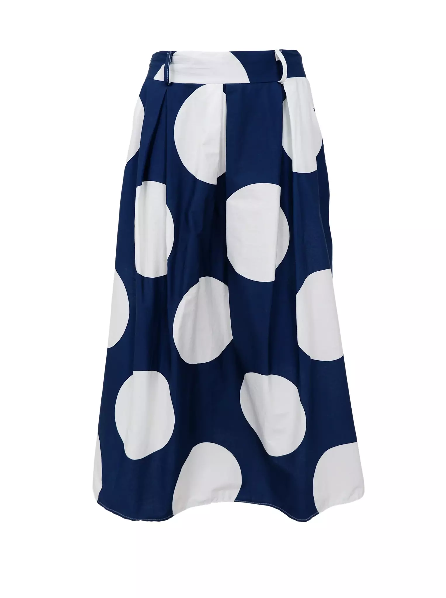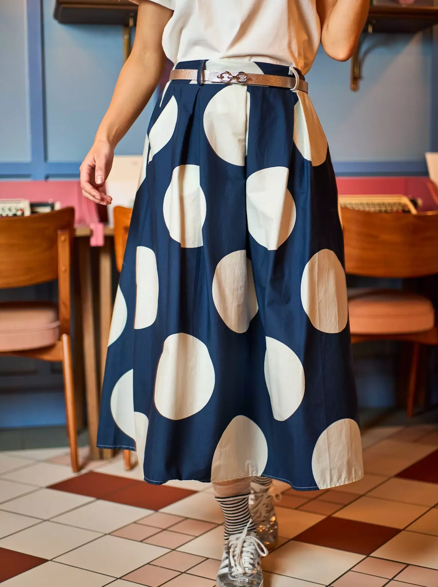 Elegant och feminin midikjol i en lätt och bekväm bomullskvalitet som faller vackert och skapar en smickrande silhuett. Den medelhöga midjan med bälteshällor ger möjlighet till en personlig styling, medan de fina vecken tillför volym och rörelse.