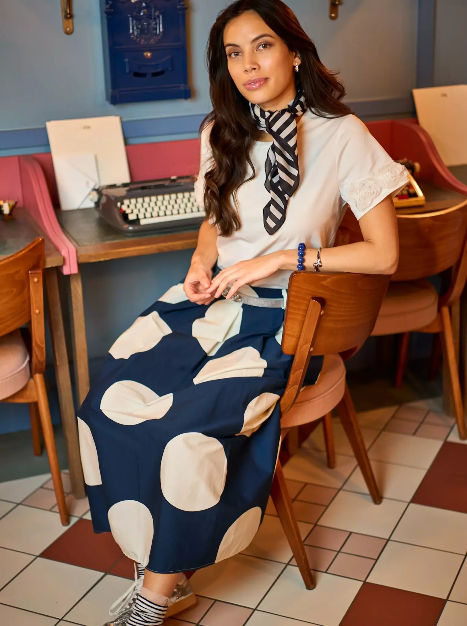 Det klassiska prickiga mönstret ger ett tidlöst och lekfullt uttryck som passar perfekt in i Black Colours universum med fokus på statement-plagg och glädjen i att klä upp sig.