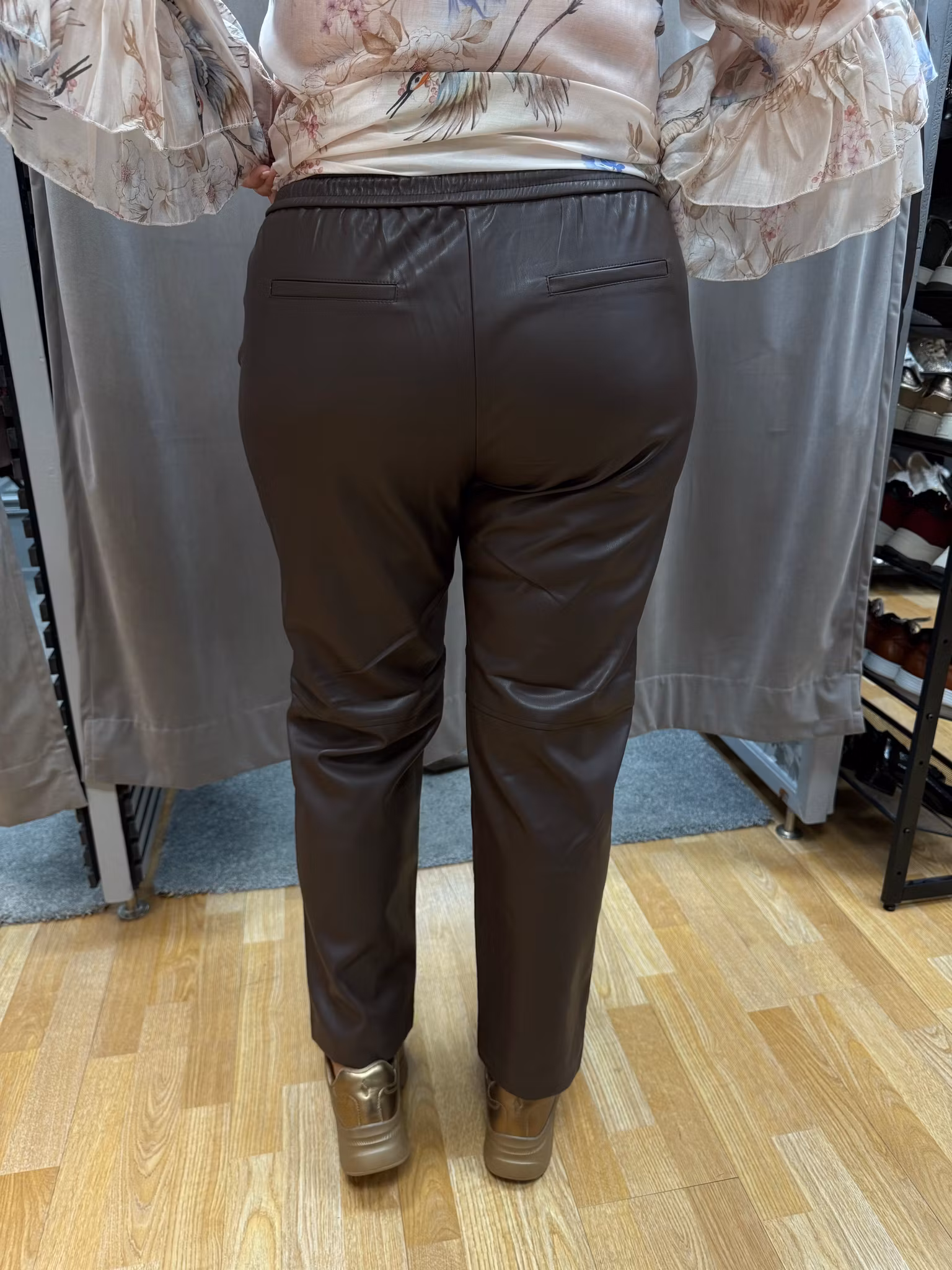 Stilsäkra och bekväma – dessa bruna skinnbyxor i veganskt läder är den perfekta kombinationen av elegans och komfort. Byxorna har en rak passform som ger en smickrande siluett och passar lika bra till vardag som till fest.