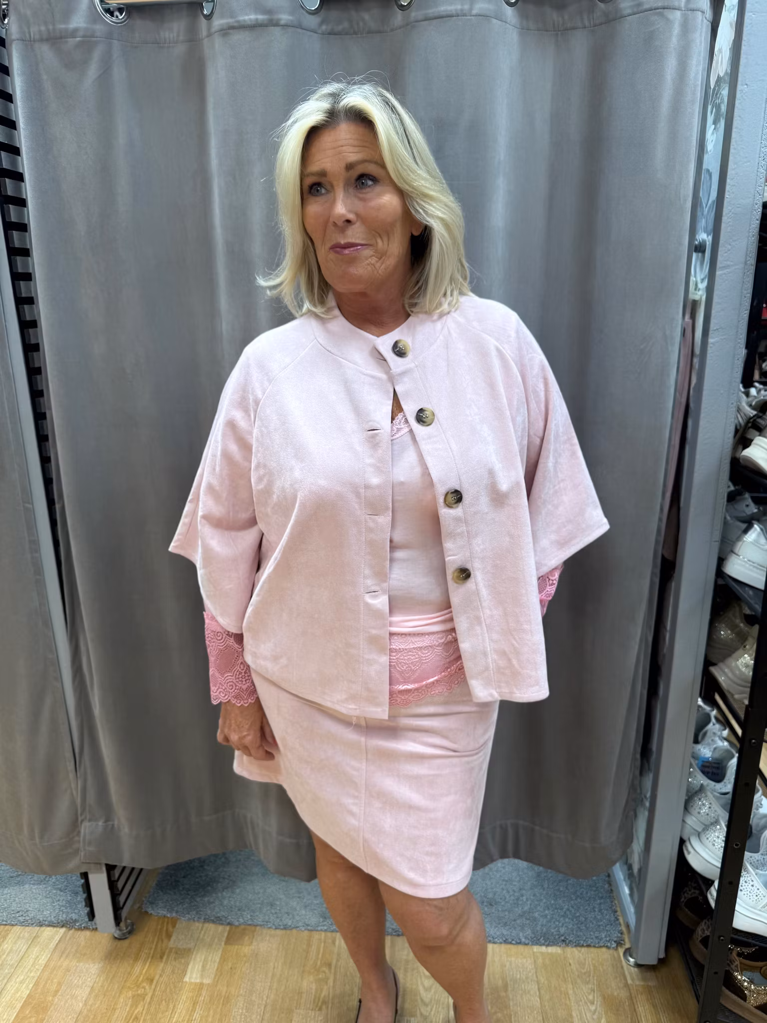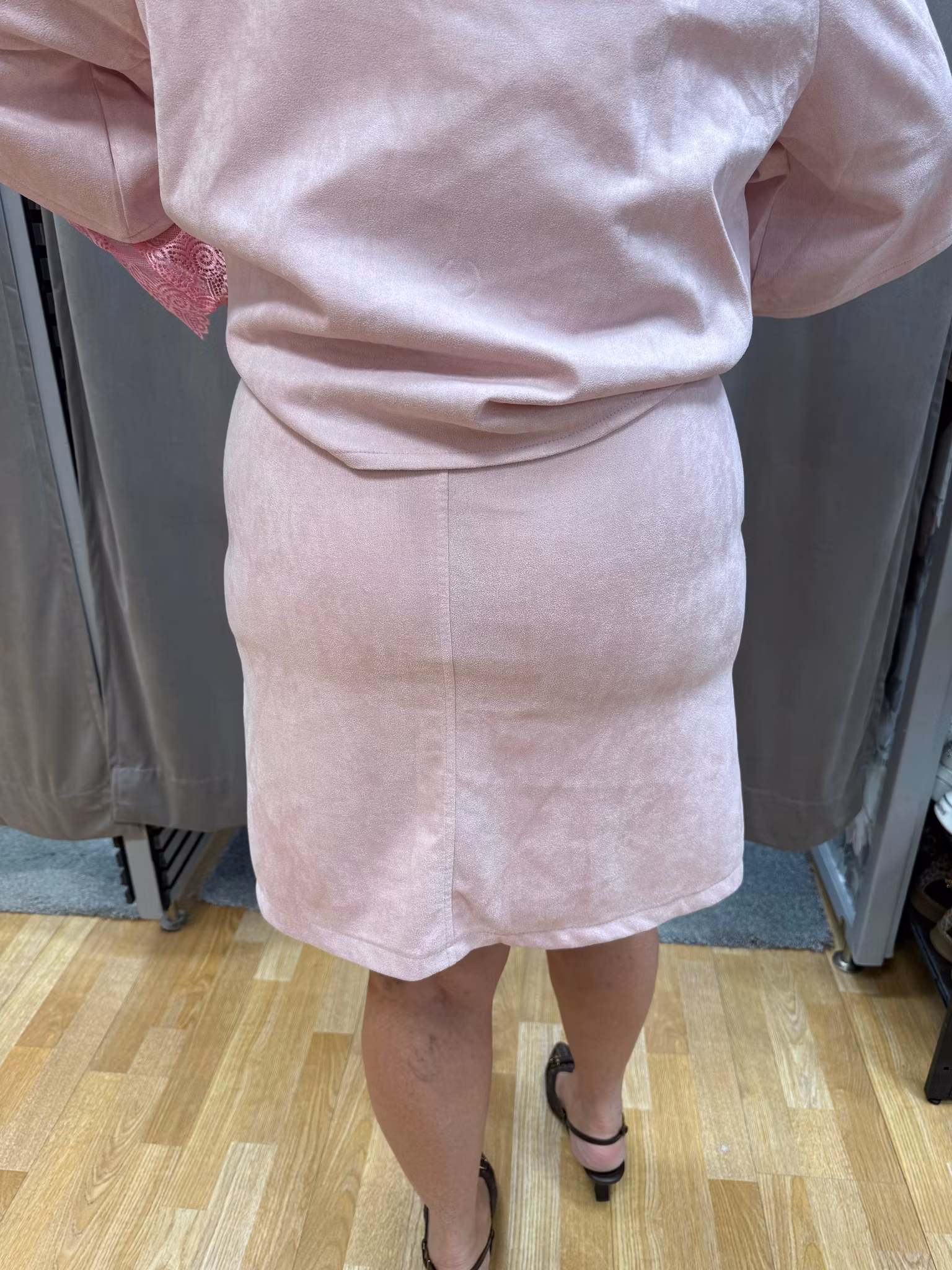 Stilren och feminin rosa kjol i mjuk mockaimitation som ger en exklusiv känsla och en elegant silhuett. Kjolen har en rak, lätt figurnära passform som är smickrande och bekväm att bära. Det mockaliknande materialet är mjukt, följsamt och passar perfekt både till vardag och mer uppklädda tillfällen.