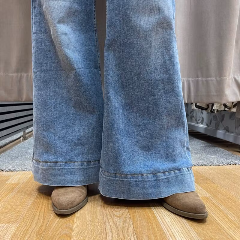 Uppdatera garderoben med dessa trendiga vida jeans med hög midja – en perfekt kombination av retroinspirerad stil och modern passform. Jeansen har en figurnära passform upptill och faller snyggt ut i ett flared ben som ger en smickrande siluett. Tillverkade i en mjuk och stretchig denim med bekväm passform, vilket gör dem lika sköna som snygga.