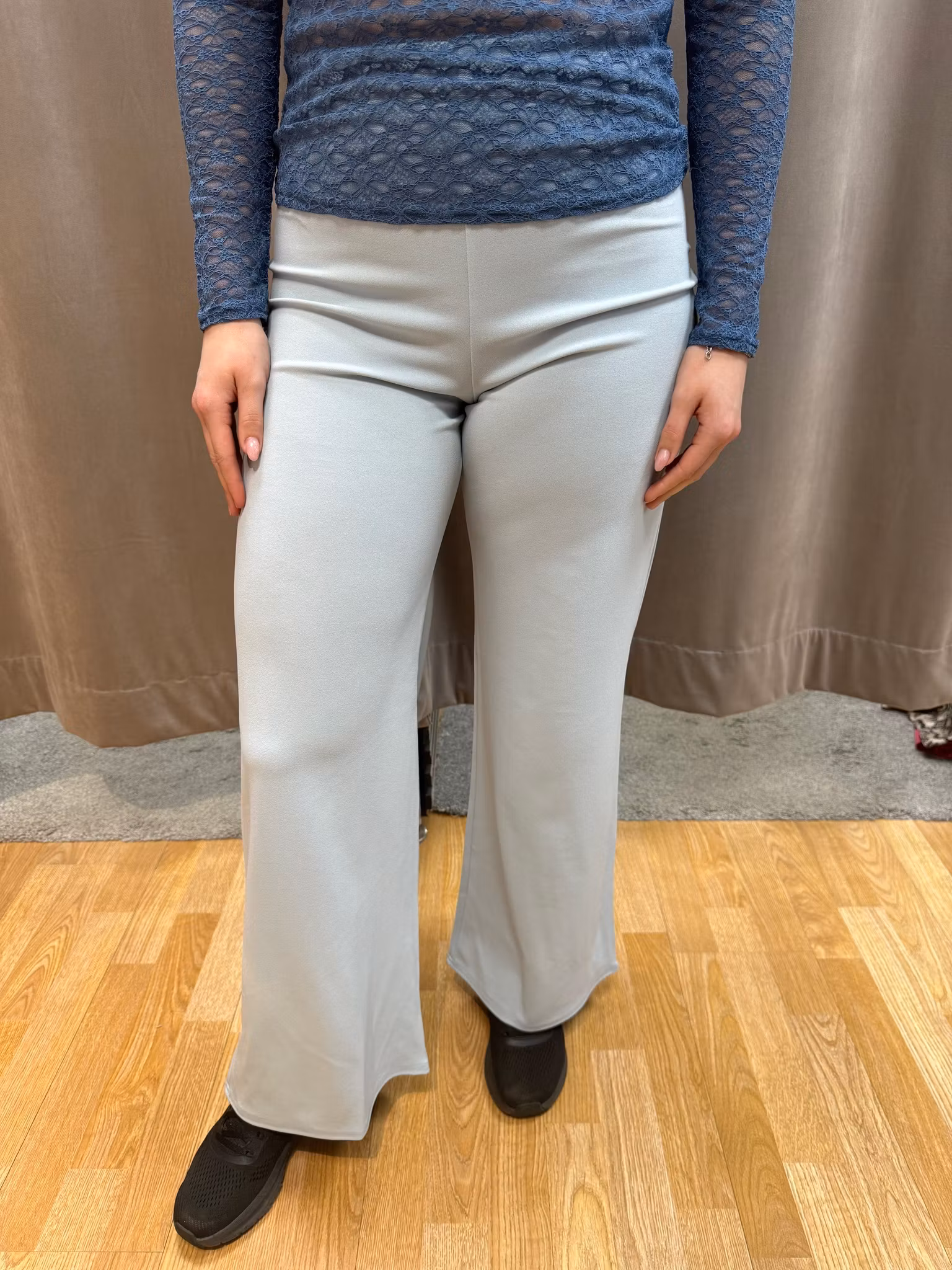 Stilrena och bekväma byxor i en Ljusblå nyans som ger ett lugnt och elegant intryck. Modellen har raka, lätt vida ben som faller snyggt och ger en smickrande siluett. Det stretchiga materialet gör dem otroligt sköna att bära – hela dagen.