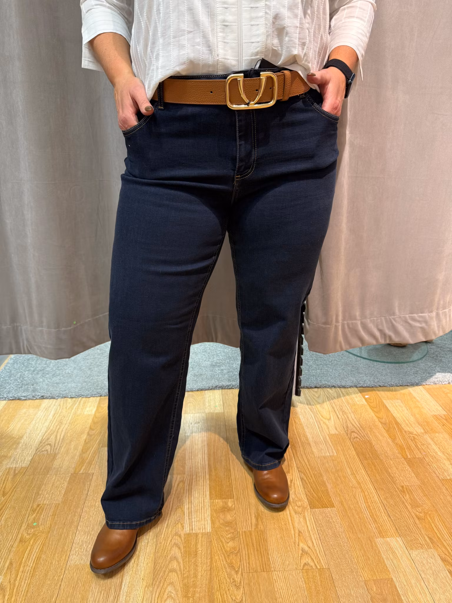 Dessa mörkblå jeans är ett perfekt basplagg för garderoben – tidlösa, bekväma och lätta att styla. Jeansen har en hög midja som ger en smickrande silhuett och en rak benmodell som passar alla tillfällen.
