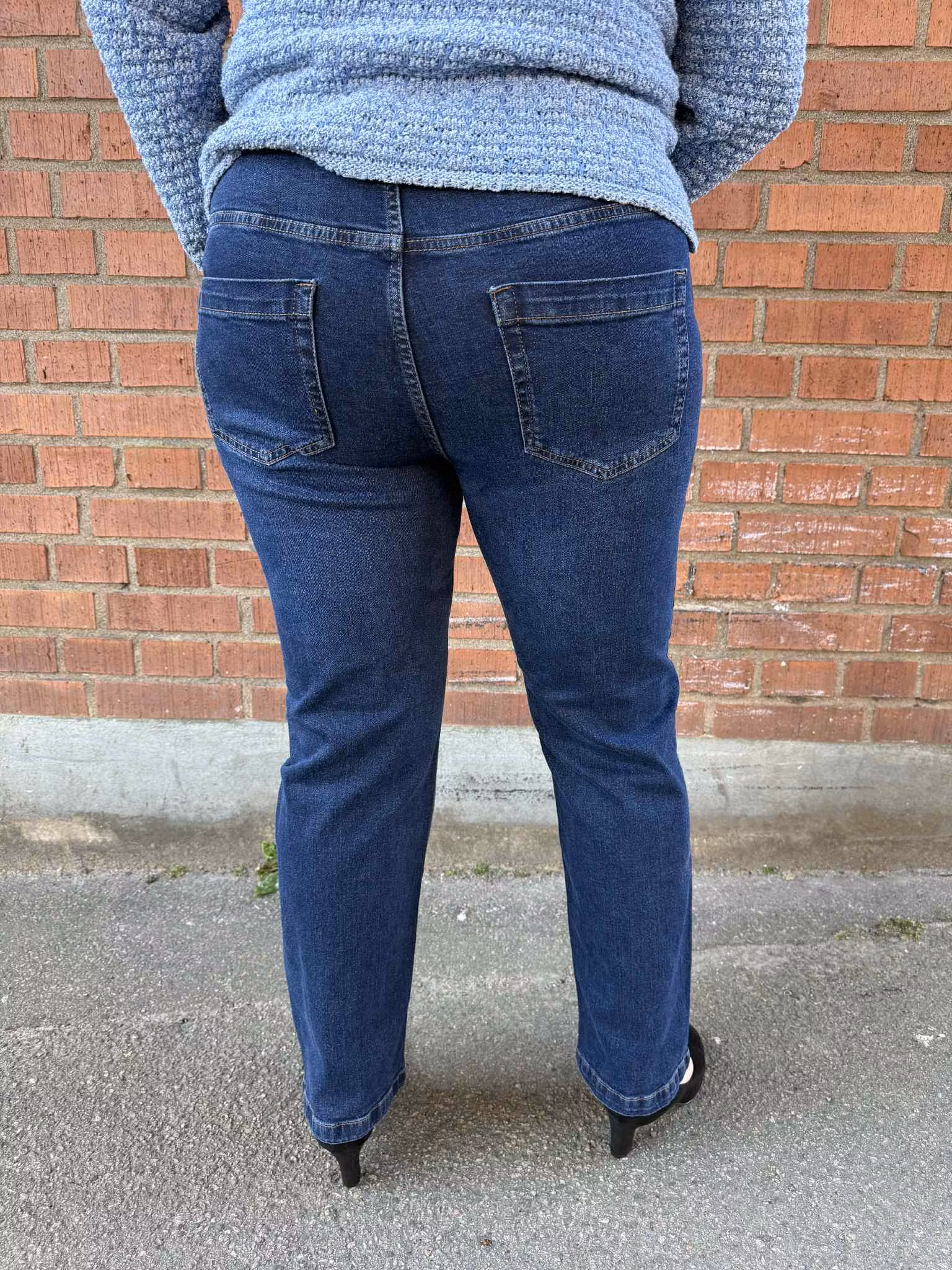 Mörkblå jeans med regular fit/normal passform och hellånga raka ben. Tillverkade i denim med lätt stretch för bästa komfort och rörelsefrihet. Ett klassiskt basplagg som passar till både vardag och fest. Benlängden är 80 cm.
