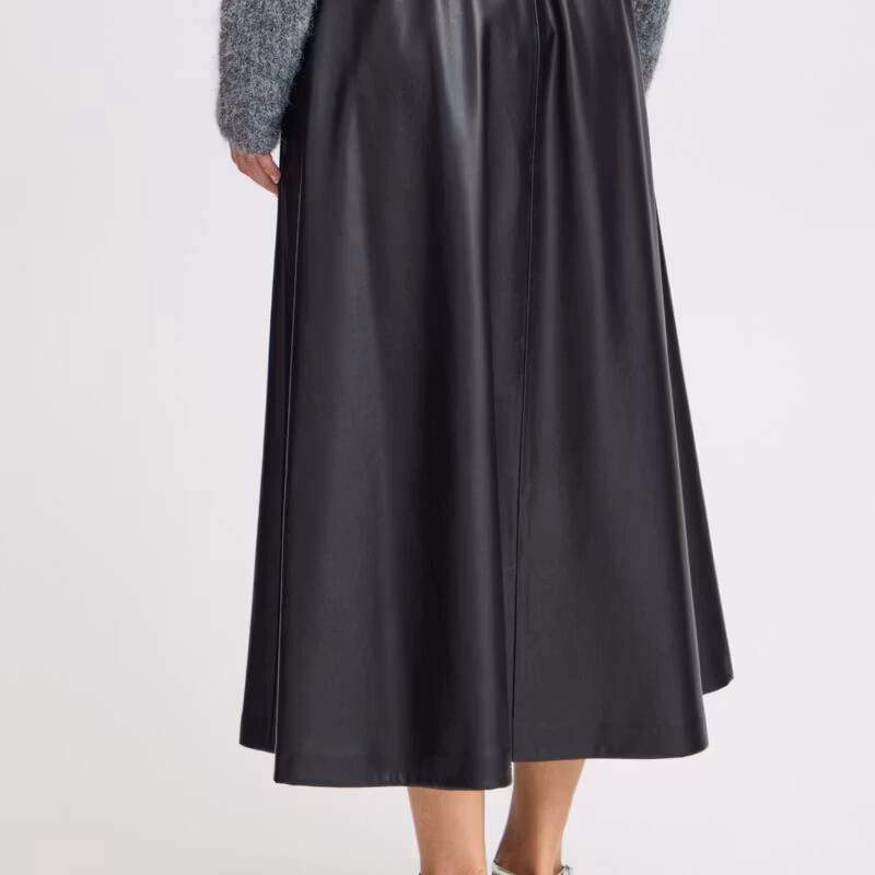REA - Svart skinnkjol 799 kr Produkten är tyvärr slut i lager. Lagersaldo: Artikelnummer: 30 Leverantör: B.young Produktbeskrivning En svart kjol i syntetläder med fickor, samt är A-formad och normal i midjan. Slutar vid vaden.Material: 100% polyester
