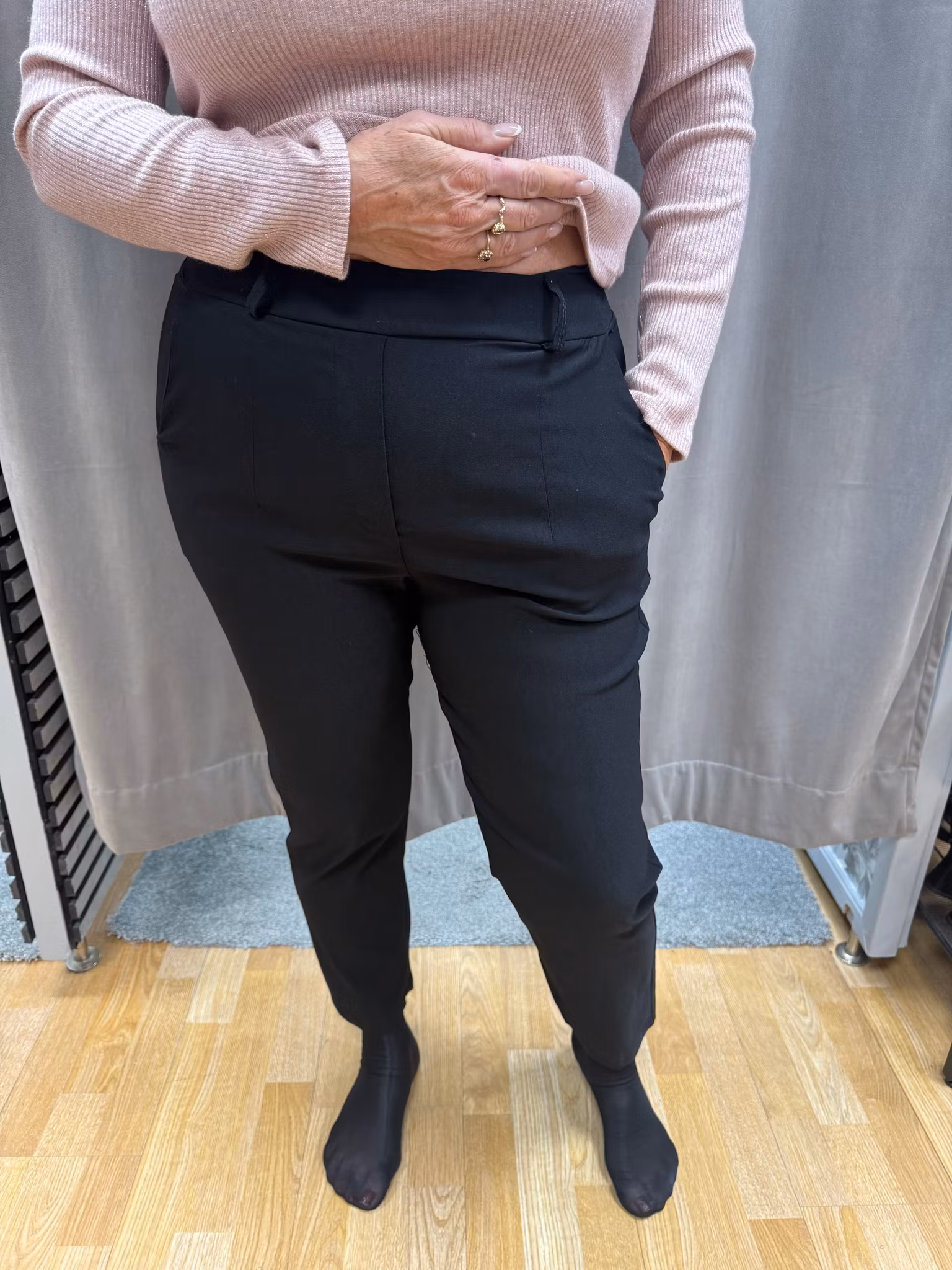 Stilrena och bekväma byxor som kombinerar en dressad look med hög komfort. Byxorna är tillverkade i ett stretchigt och följsamt material som ger perfekt passform och rörelsefrihet. De har lätt avsmalnande ben och pressveck framtill som skapar ett elegant uttryck, samtidigt som den elastiska midjan bak gör att de sitter skönt hela dagen.