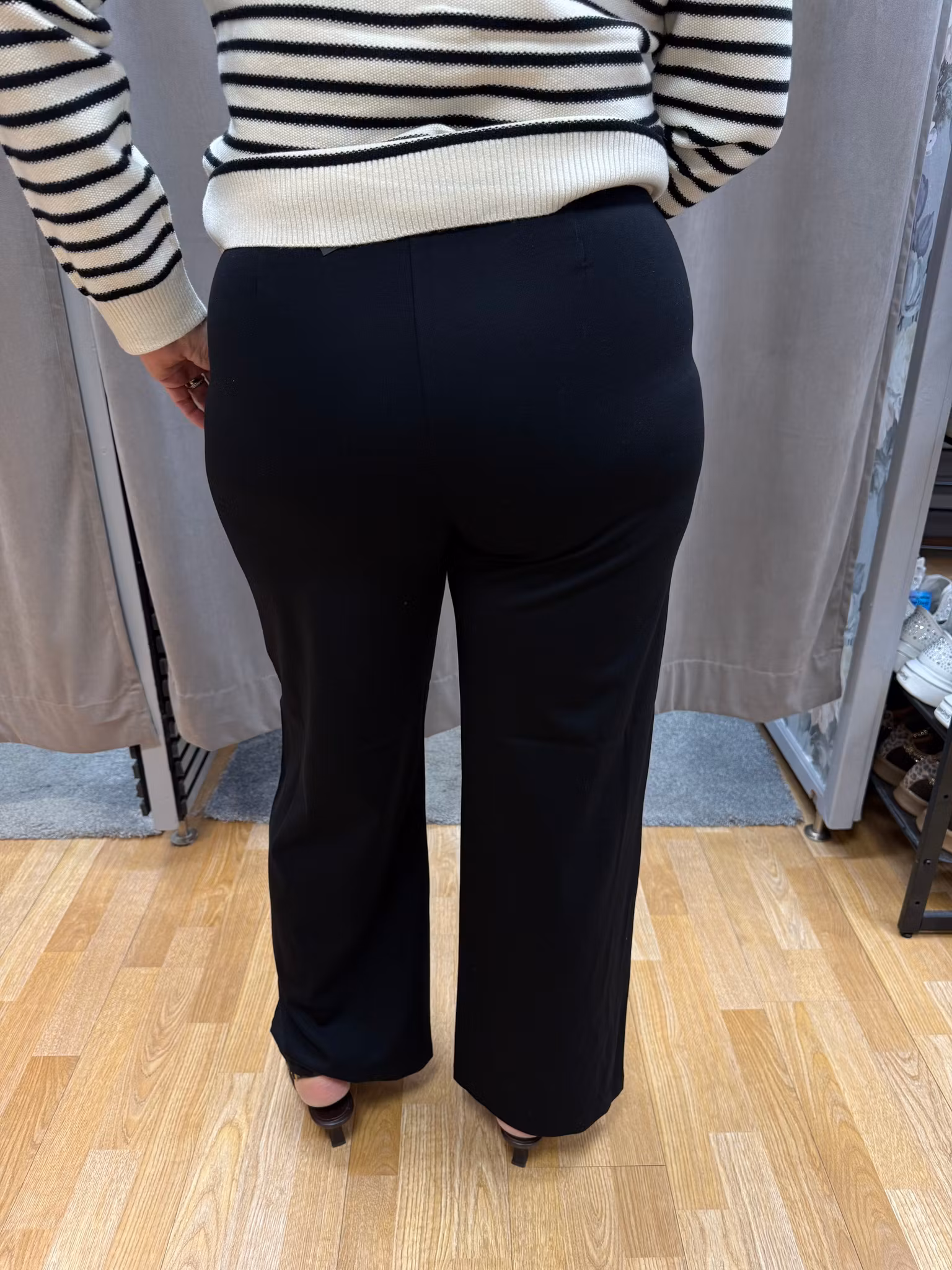 Eleganta och bekväma svarta byxor med dekorativa knappar i sidan som ger ett stilrent och sofistikerat uttryck. Byxorna har en rak, lätt vid passform som faller snyggt och ger en smickrande silhuett. Den höga midjan ger bra komfort och en fin form.