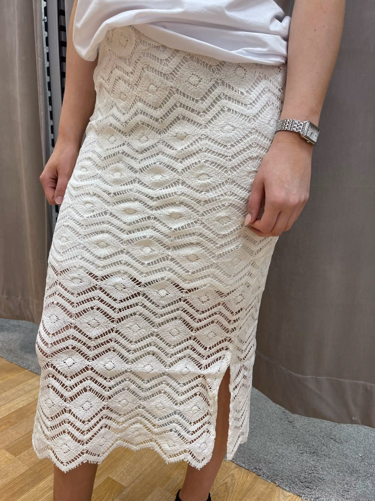 Virkad vit spetskjol