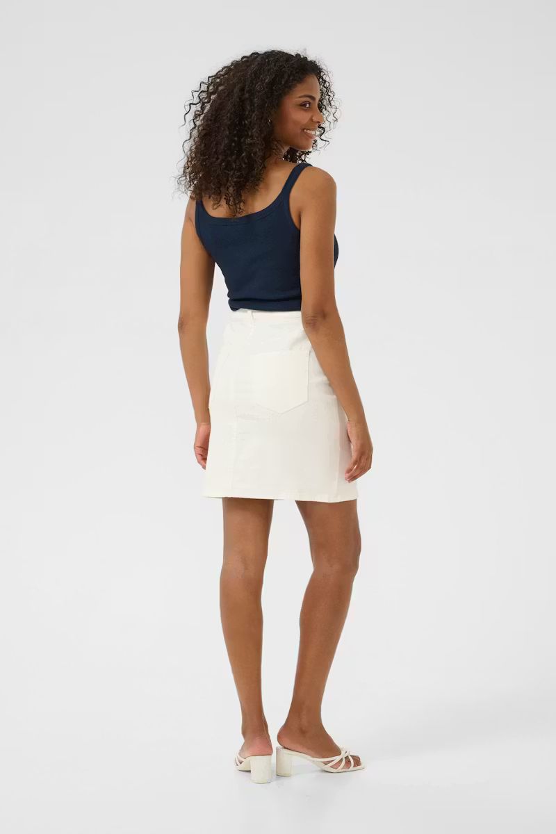Vit kort jeanskjol 799 kr Storlek 36 38 40 42 44 46 I lager. Lägg i korgen Lagersaldo: Artikelnummer: 2008 Leverantör: Kaffe Produktbeskrivning Smal jeanskjol med smickrande medelhög midja och rak, stilren silhuett. Tillverkad i mjuk stretchbomull för bekväm rörelse.