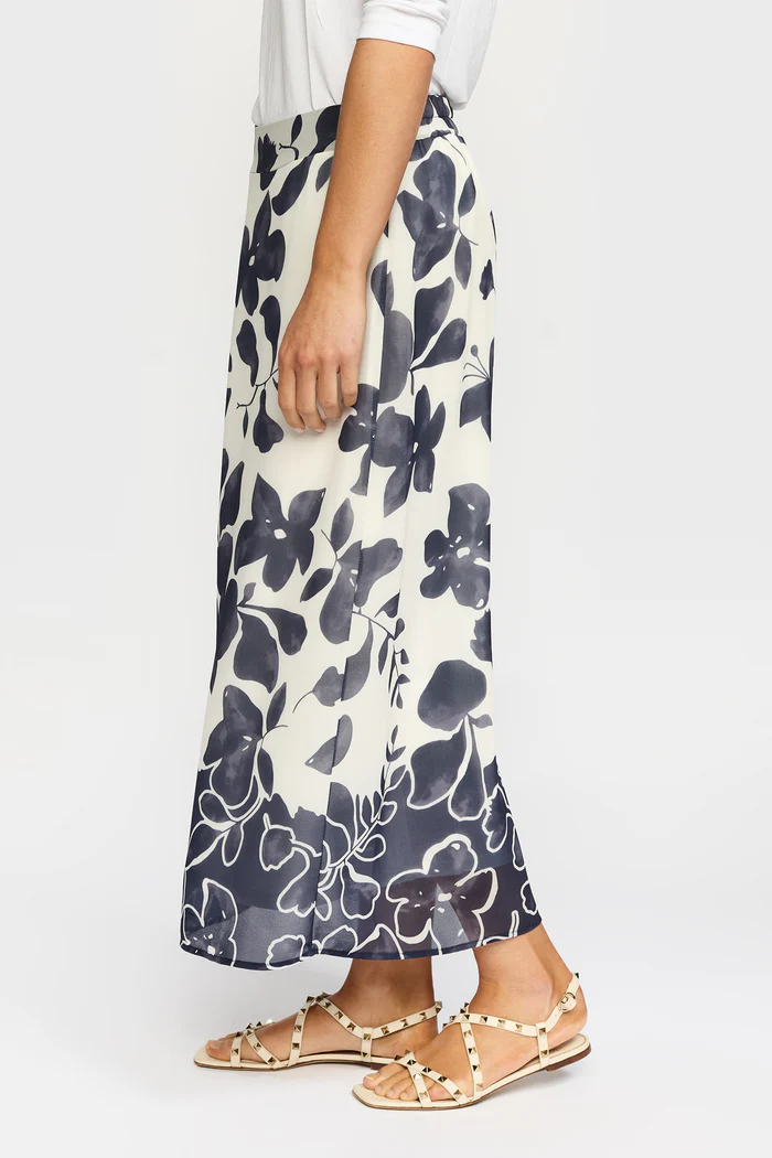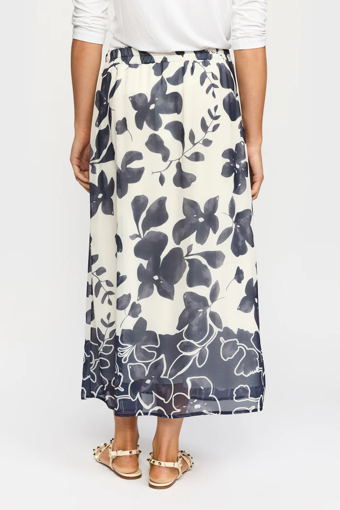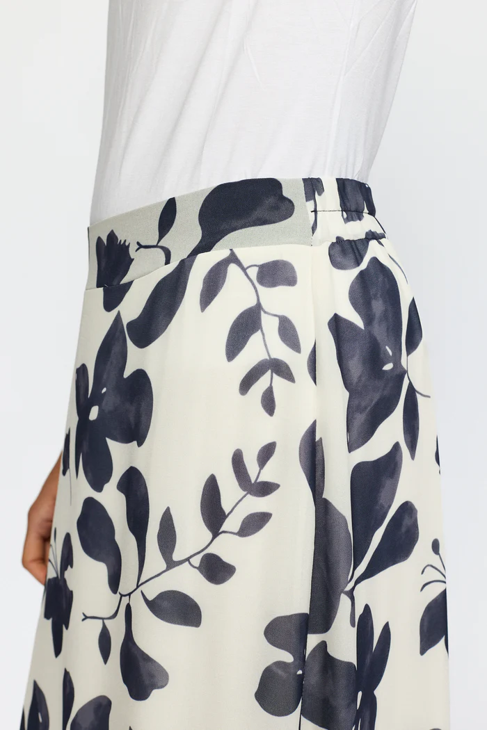 En elegant och luftig midikjol i ett stilrent blommönster i mörkblått och vitt. Kjolen har en smickrande, rak passform som faller mjukt längs kroppen och ger ett avslappnat men sofistikerat uttryck.