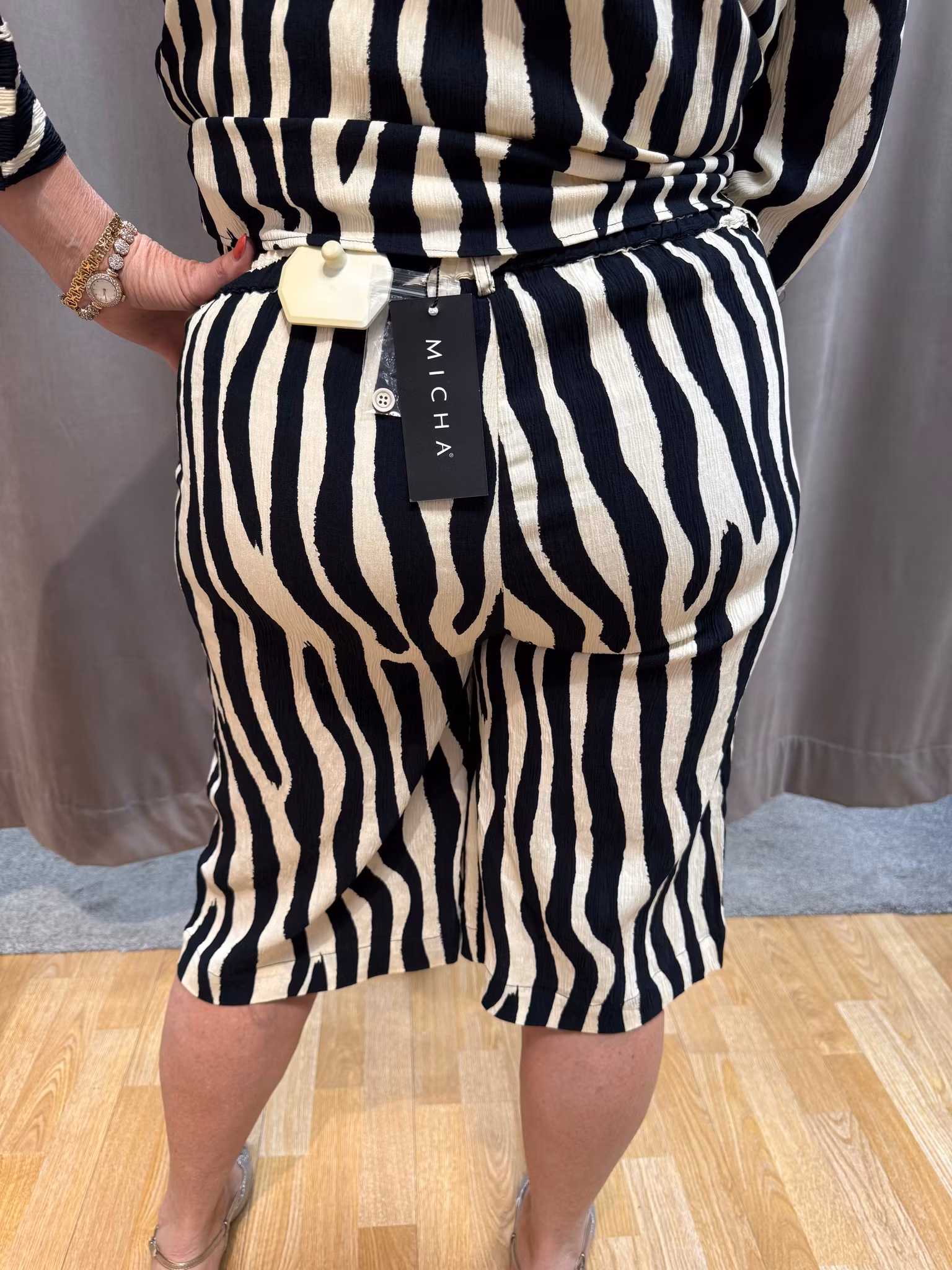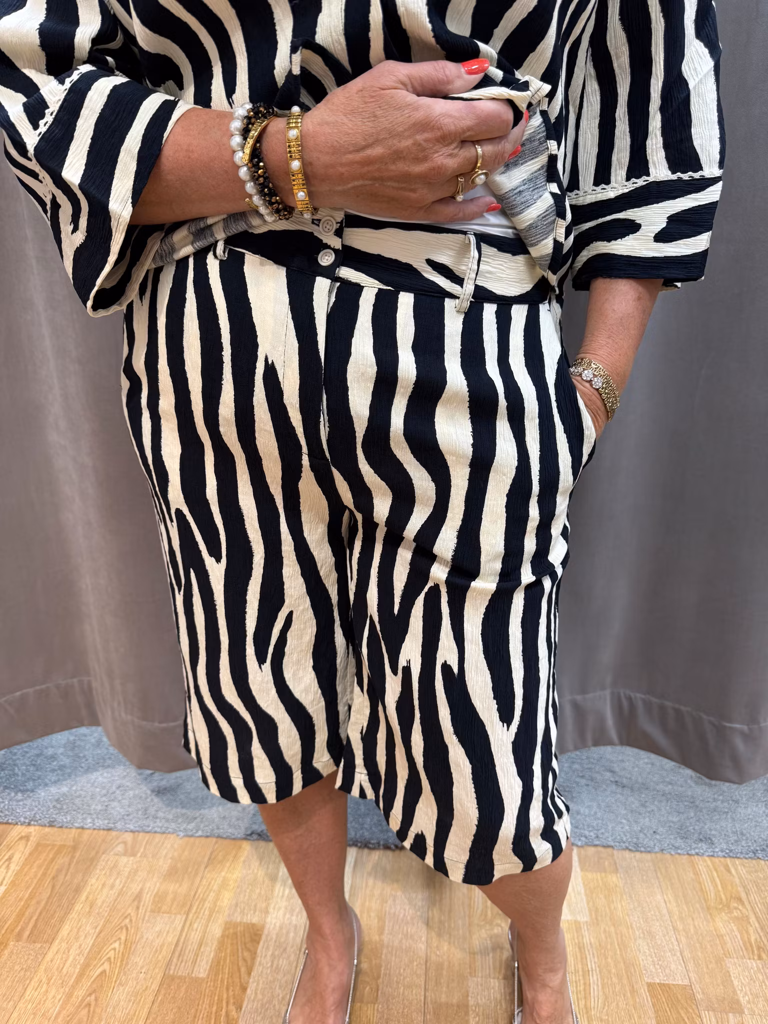 Trendiga shorts i ett stilrent zebramönster som ger din outfit en modern och självsäker känsla. Modellen har en smickrande, avslappnad passform med rak benvidd och en längd som slutar strax ovanför knät.