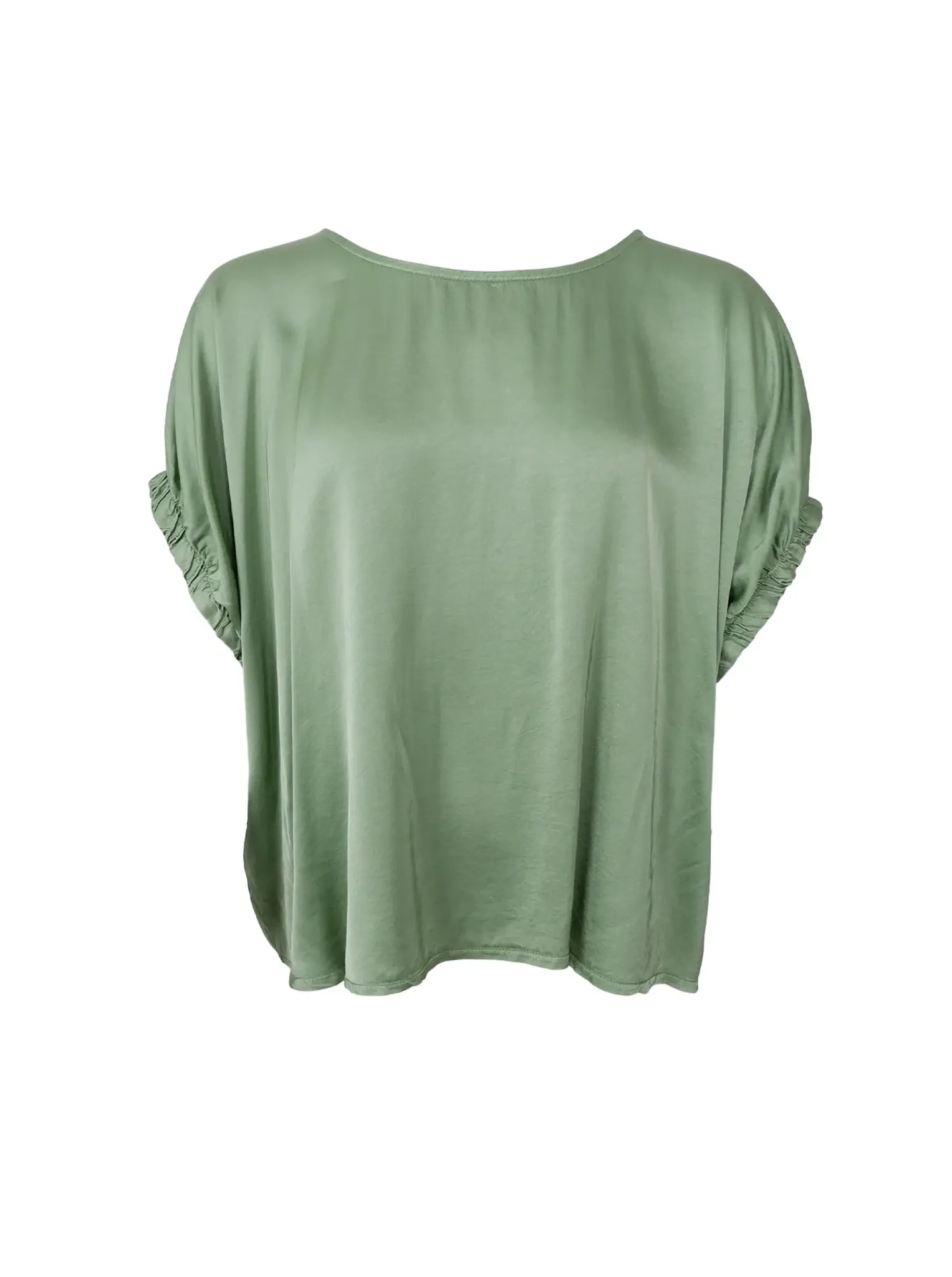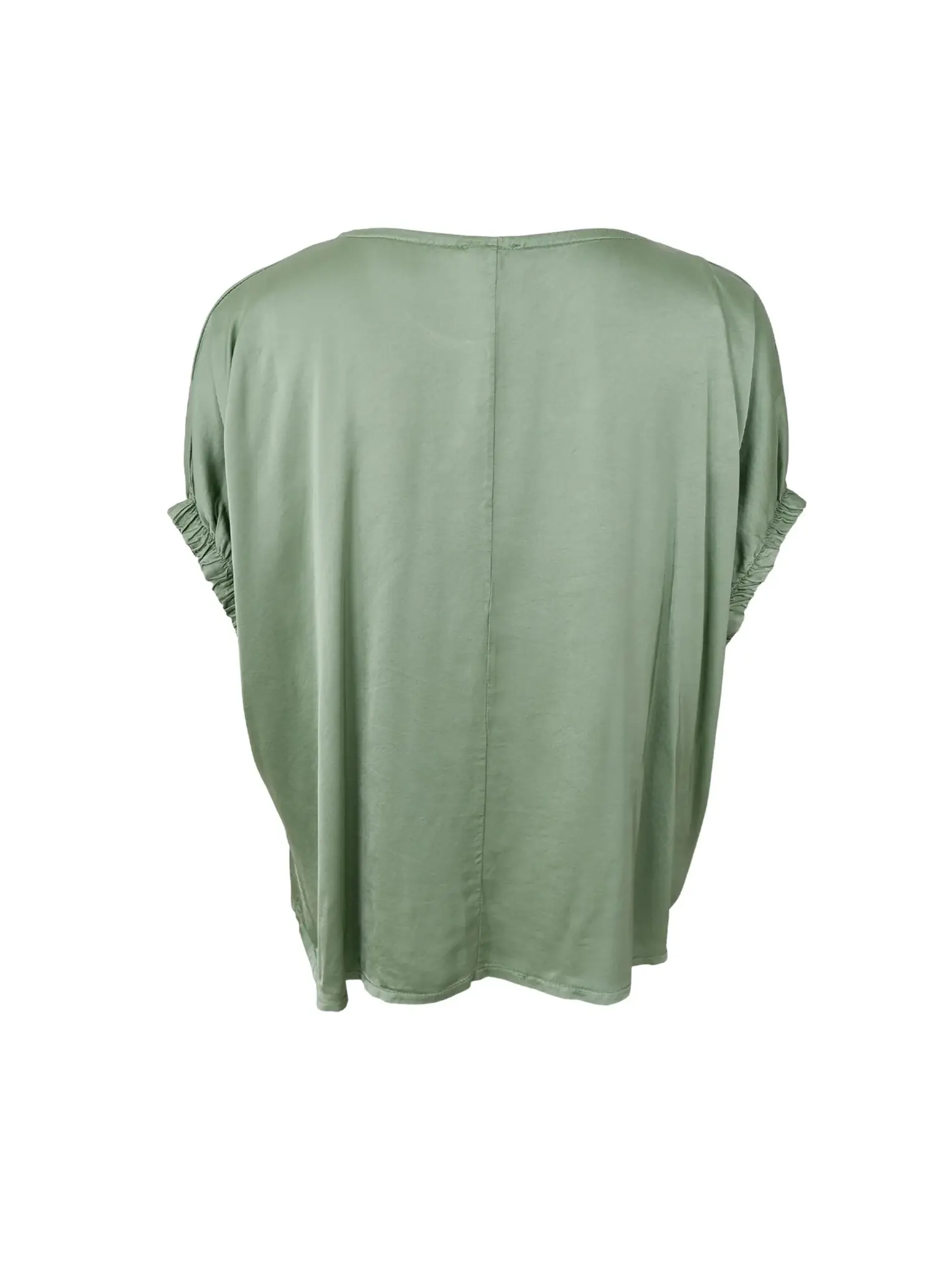 Enkel och stilren satinlus i Onesize med rund halsringning och en lös passform som faller fint runt kroppen. De korta ärmarna har en lätt rynkad detalj som ger en feminin touch till det annars minimalistiska uttrycket. Tillverkad i en mjuk och lätt viskoskvalitet som gör den perfekt både till vardags och mer uppklädda tillfällen.