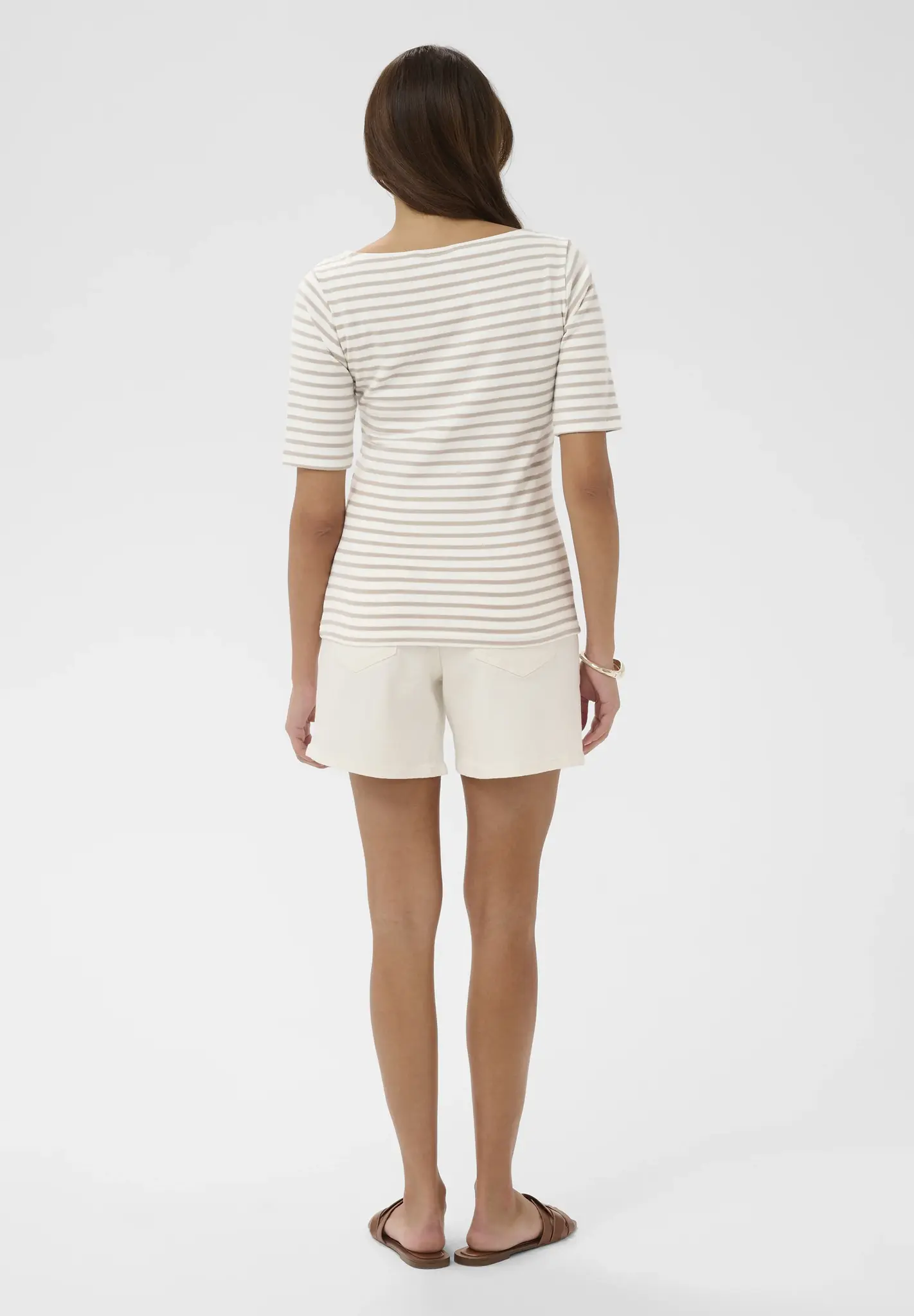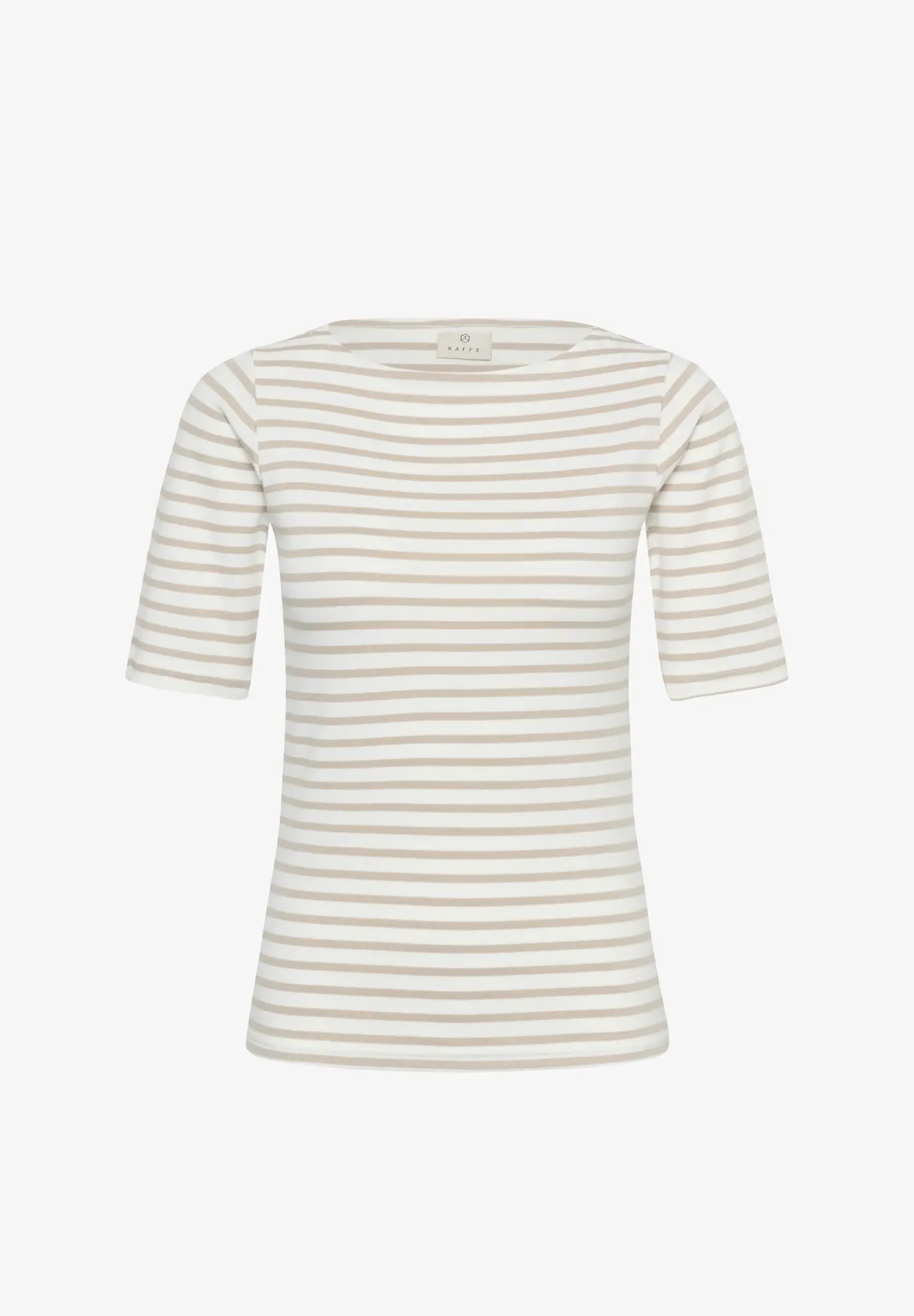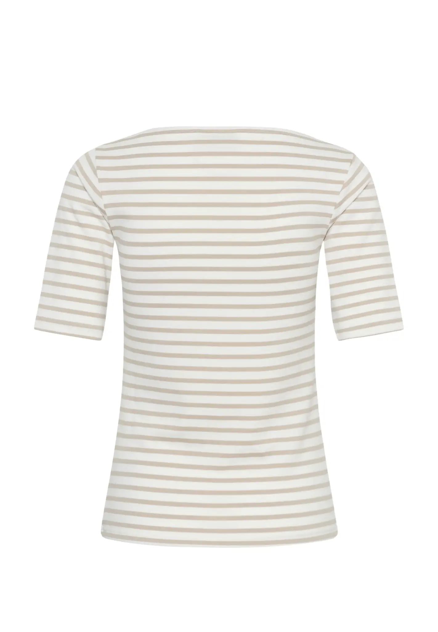 Denna randiga topp har rak passform, öppen båtringning och ärmar till armbågen. Stilrena linjer och mjukt intryck för en klassisk stil.