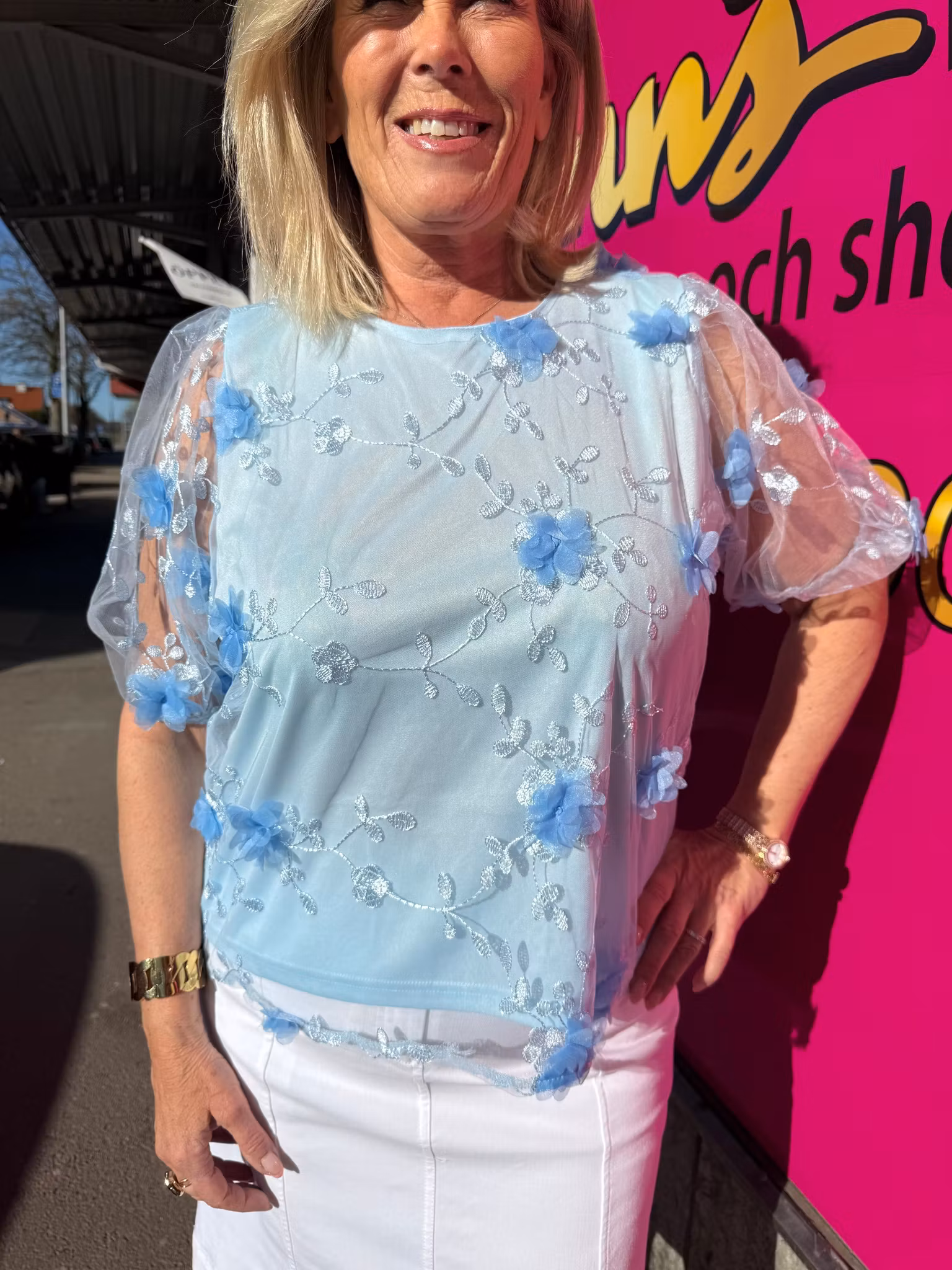 Blå topp med 3D blommor 599 kr Storlek XS S M L XL I lager. Lägg i korgen Lagersaldo: Artikelnummer: 2103 Leverantör: Sisters Point Produktbeskrivning 100% polyester