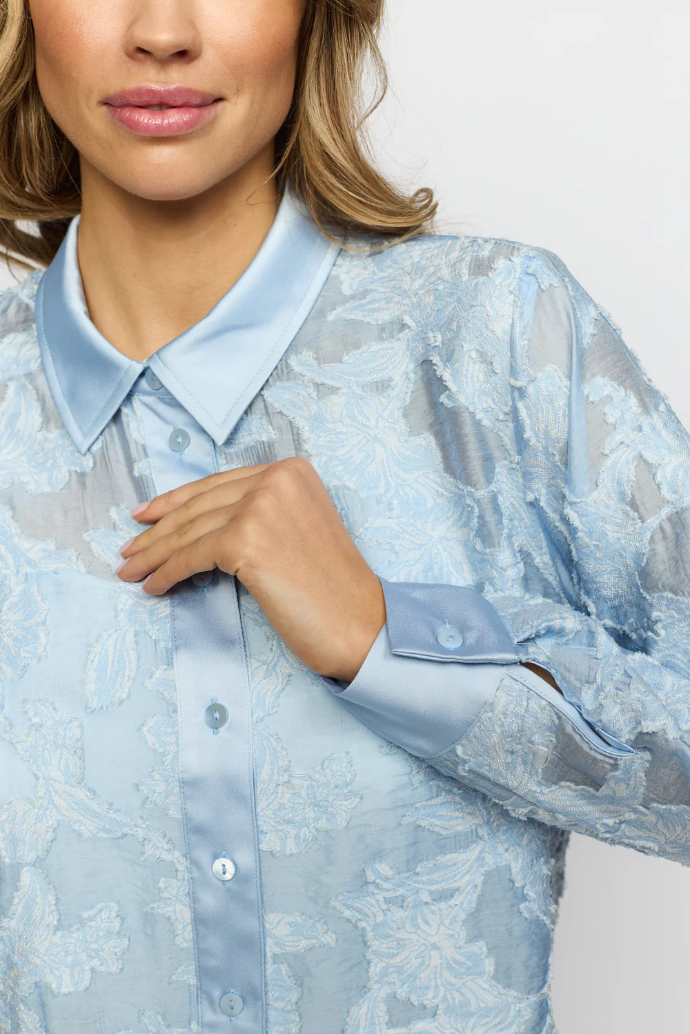 Brokadmönstrad ljusblå skjorta 899 kr storlek S M L XL XXL I lager. Lägg i korgen Lagersaldo: Artikelnummer: 1993 Leverantör: 2.biz Produktbeskrivning 40% Viskos30% Nylon30% Polyester