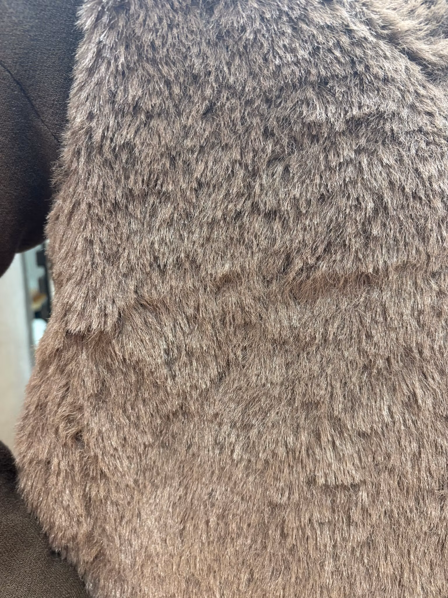 Mjuk och fluffig brun fuskpälsväst som ger både värme och stil. Västen har en rak och lätt oversized passform som gör den enkel att bära över tröjor, blusar och klänningar. Den lena pälsstrukturen skapar ett lyxigt intryck samtidigt som plagget känns lätt och bekvämt. Ett mångsidigt ytterplagg som passar lika bra till vardags som för att addera en extra detalj till en mer dressad outfit.