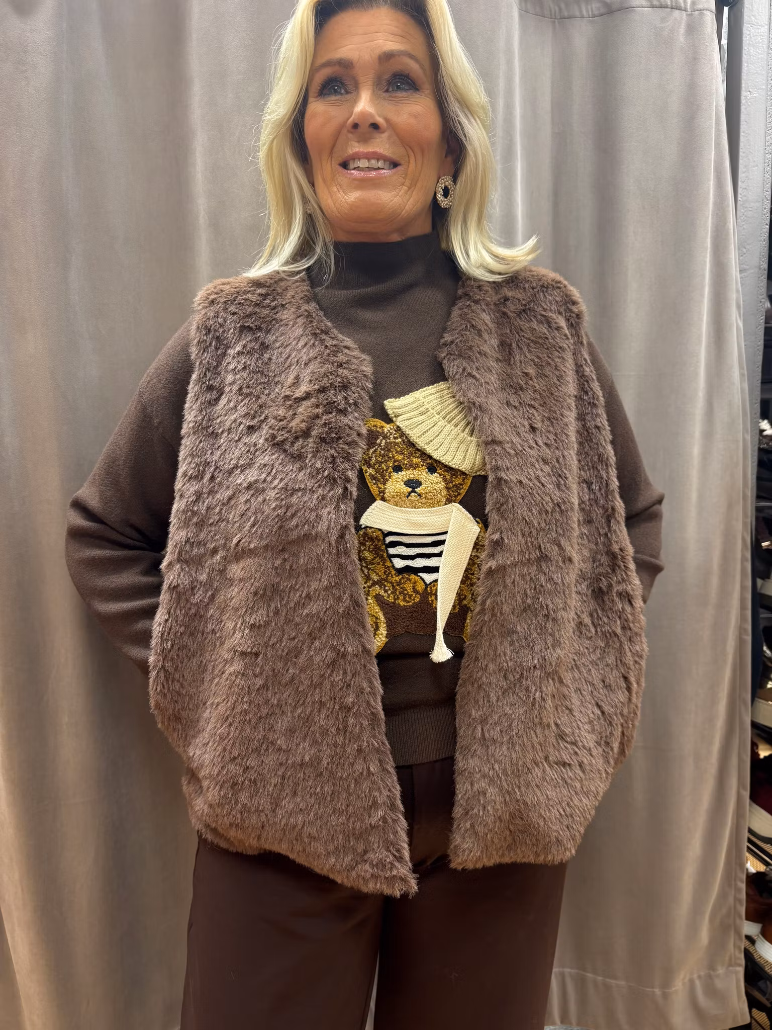 Stickad tröja med ett dekorativt nallemotiv framtill, där olika strukturer och detaljer skapar ett lekfullt och exklusivt uttryck. Nallen har både broderi, stickade inslag och en mjuk scarf som ger designen ett tredimensionellt och charmigt utseende. Tröjan har en högre halsringning och en behaglig passform som gör den lätt att bära både till vardags och som en rolig accent i en mer dressad outfit. Mjuka muddar vid ärmslut och nederkant ger en fin form och ökad komfort.