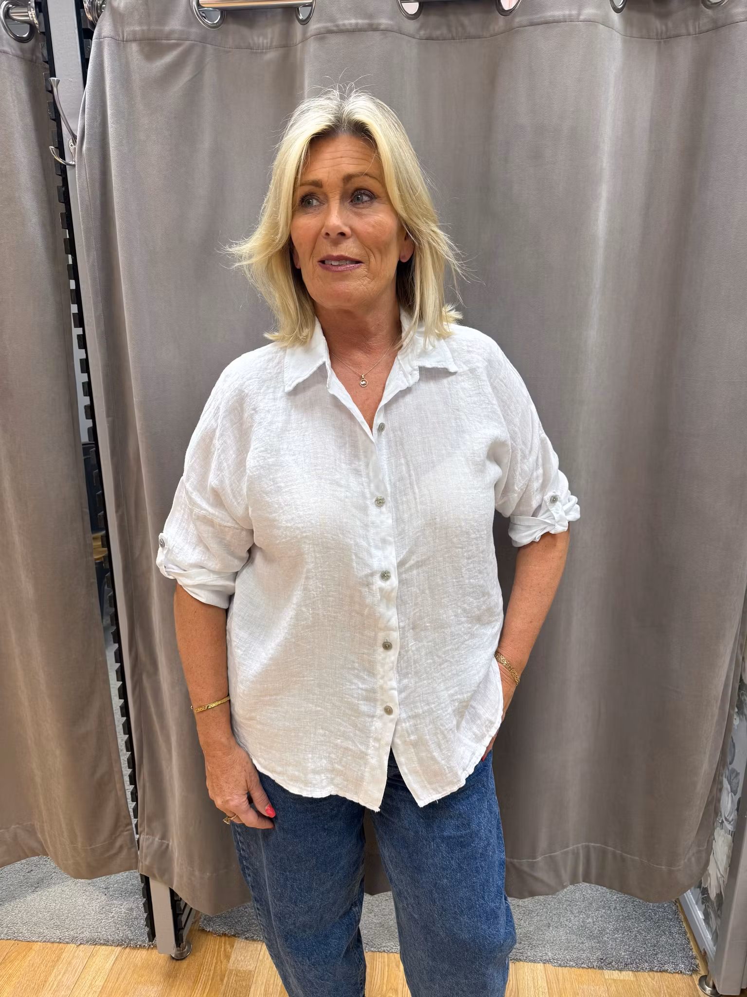 Felicia linne skjorta vit 729 kr I lager. Lägg i korgen Lagersaldo: 4 Artikelnummer: jörlevik1470 Leverantör: Jörlevik Produktbeskrivning Underbar Skön rymlig linneskjorta trekvartsärm som är längre baktill.One size passar upp till storlek 42-44100% Linne
