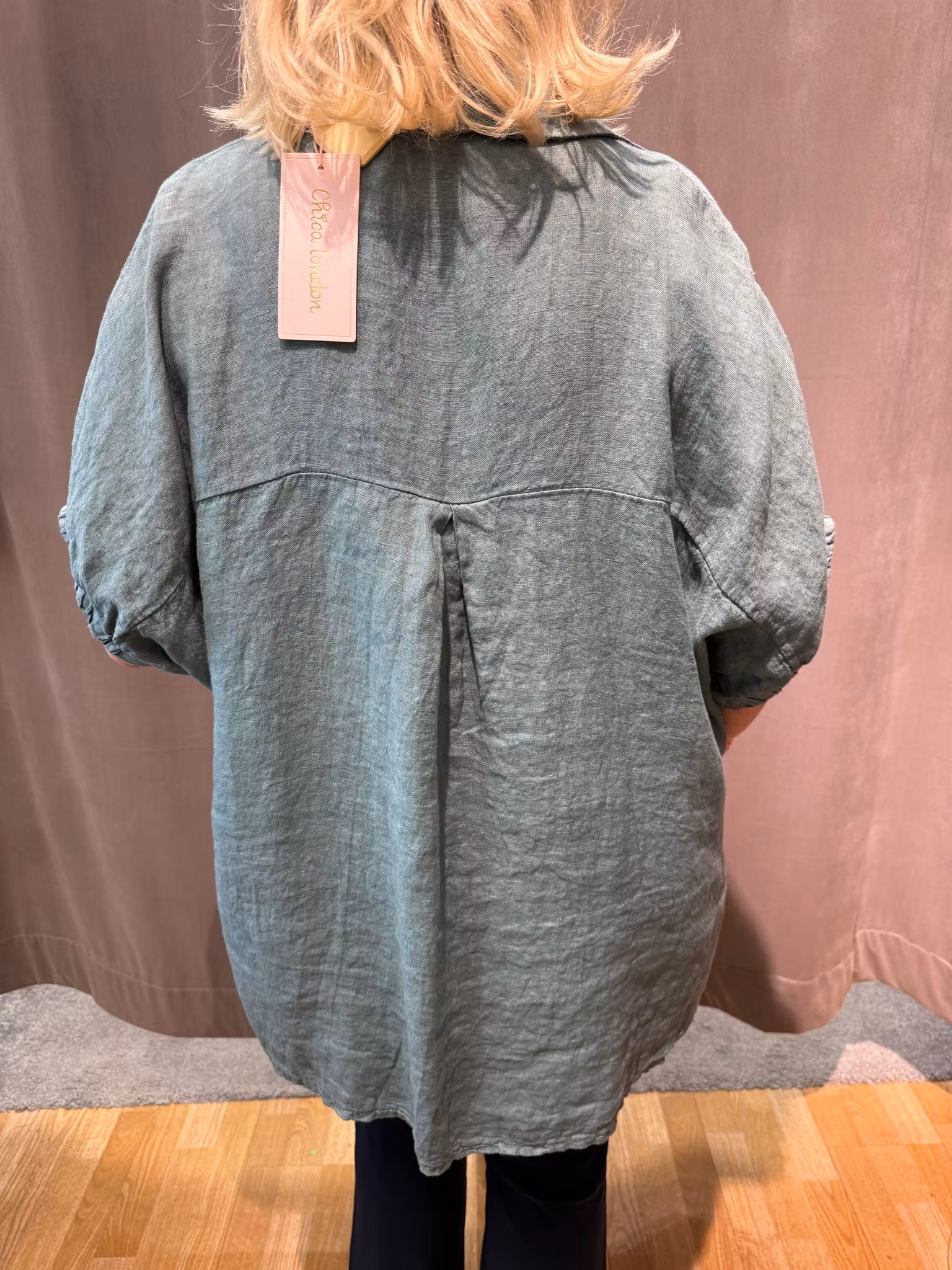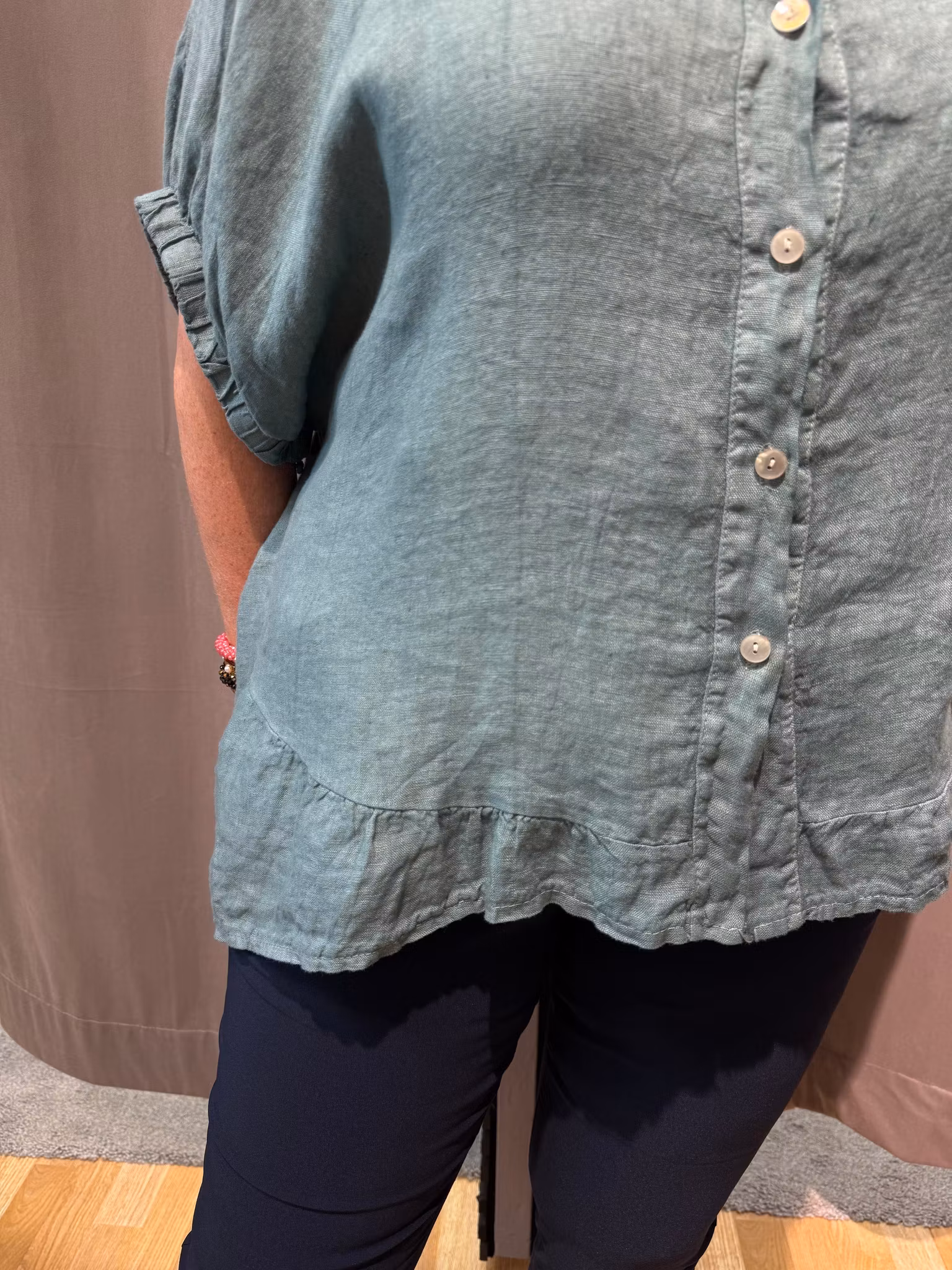 Grön linneskjorta med volang