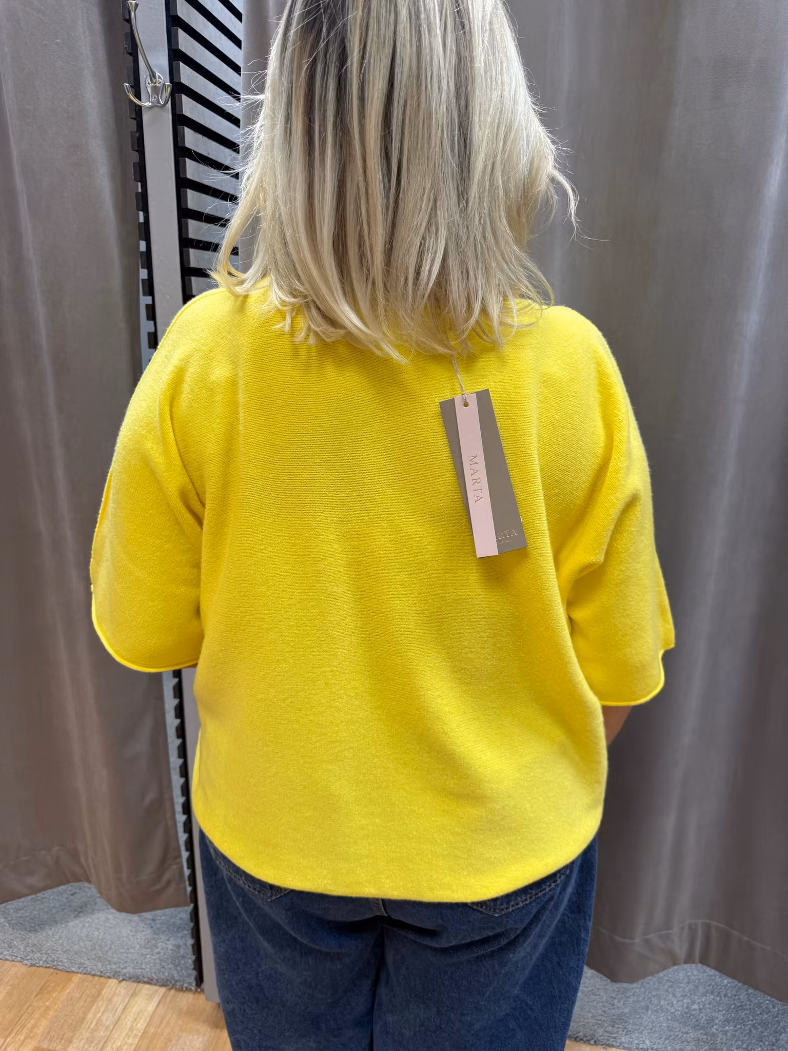 Kortärmad stickad tröja i mjukt och lätt material. Tröjan har en ledig passform med diskret struktur och rund halsringning som gör den enkel att bära både till vardag och mer uppklädda tillfällen. De korta, vida ärmarna ger ett luftigt och elegant fall, och längden gör den perfekt att kombinera med både kjol och byxa. Ett bekvämt och stilrent plagg som ger färg och värme till garderoben.