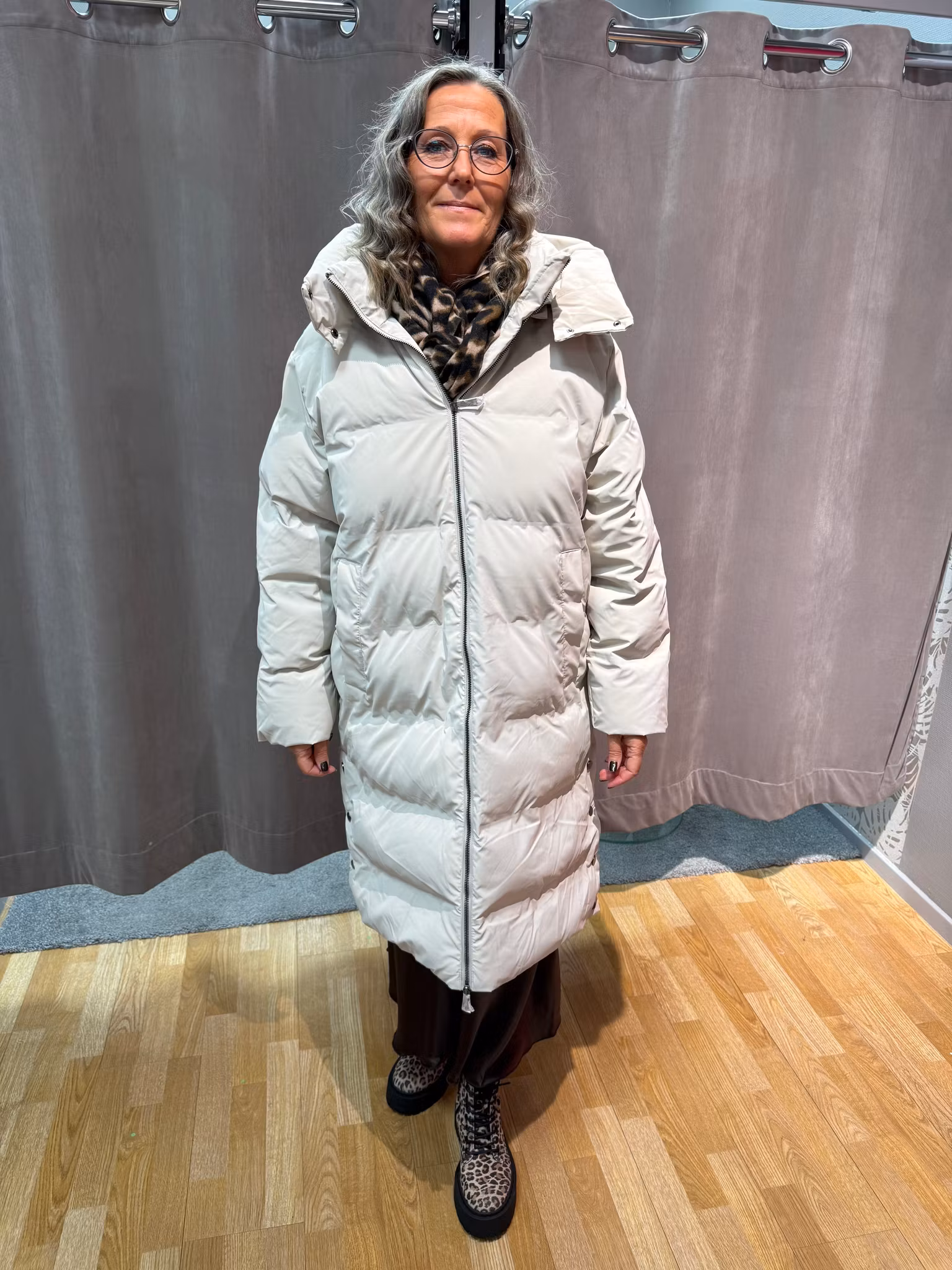 Varm och trendig lång dunjacka i ljus beige ton. Jackan har en generös passform med quiltad design och fyllig vaddering som håller värmen även under kalla vinterdagar. Försedd med praktisk tvåvägsdragkedja, sidofickor och stor huva som skyddar mot vind och snö. En stilren vinterfavorit som kombinerar funktion och mode på bästa sätt.