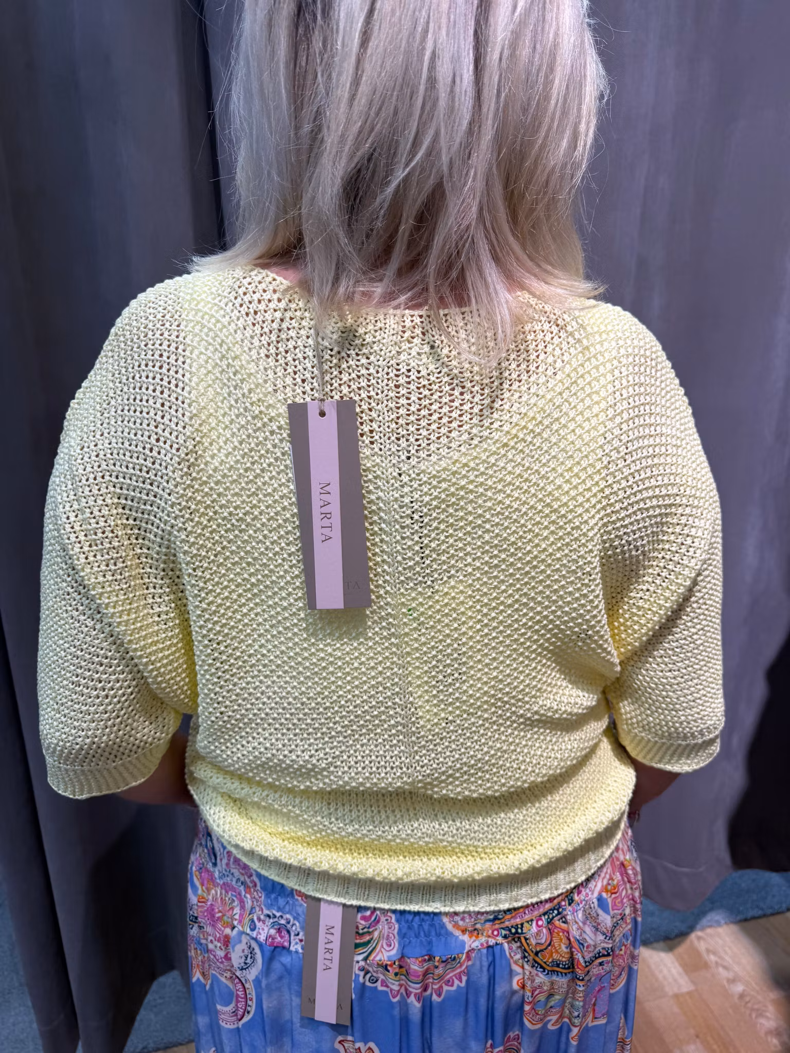 En trendig och luftig glesstickad One size tröja i vitt som ger ett fräscht och modernt uttryck. Den har en smickrande V-ringning och en avslappnad passform som faller fint över kroppen. Den öppna stickningen skapar en lätt och mjuk känsla – perfekt för lager-på-lager-styling.