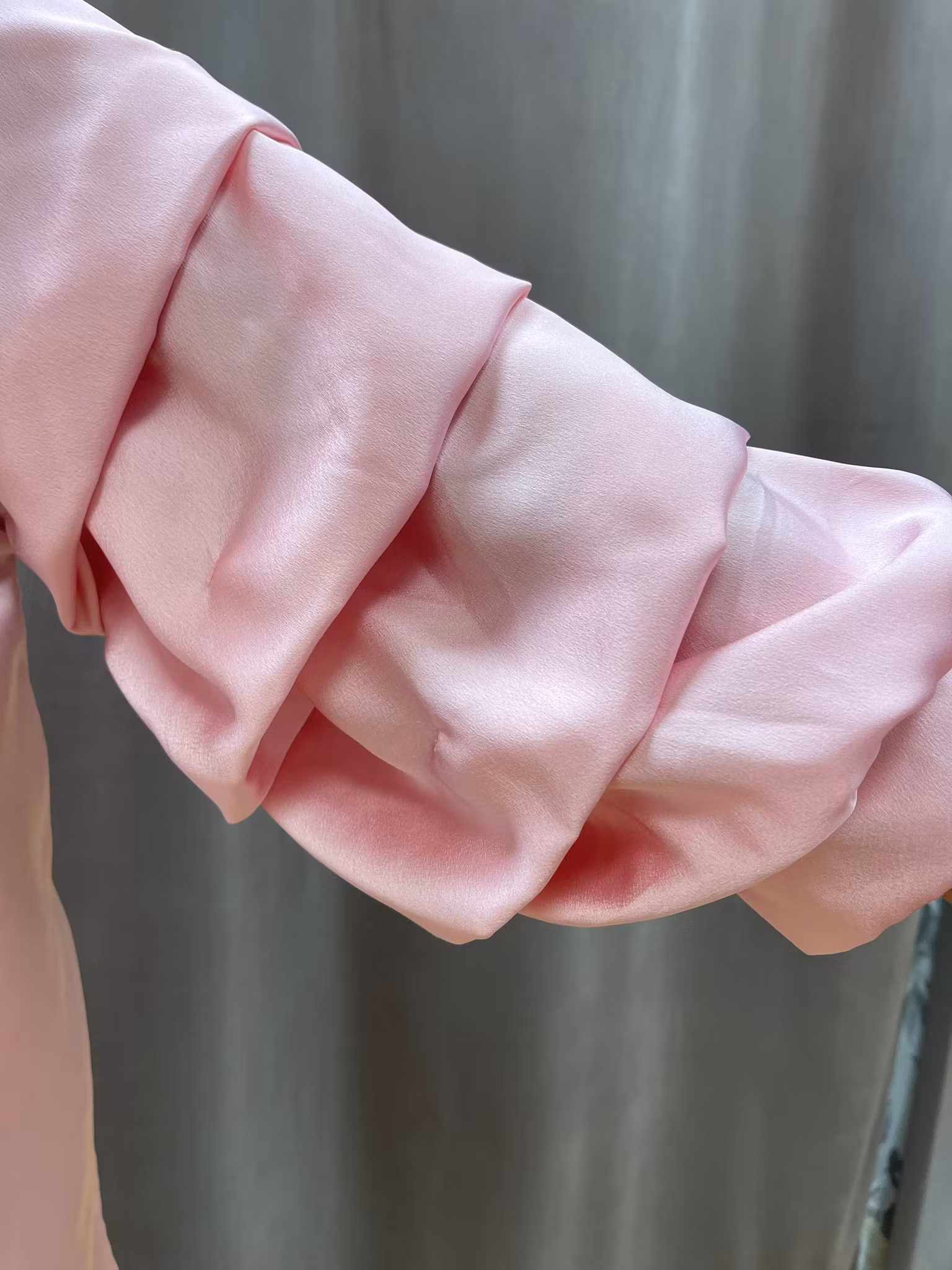 Denna exklusiva ljusrosa satinblus är en stilfull topp som lyfter varje outfit. Den har en vacker glansig satängyta, rundad halsringning och draperade ärmar som skapar mjuka volanger – en detalj som ger både rörelse och elegans. Den lediga passformen gör blusen bekväm samtidigt som den känns lyxig.