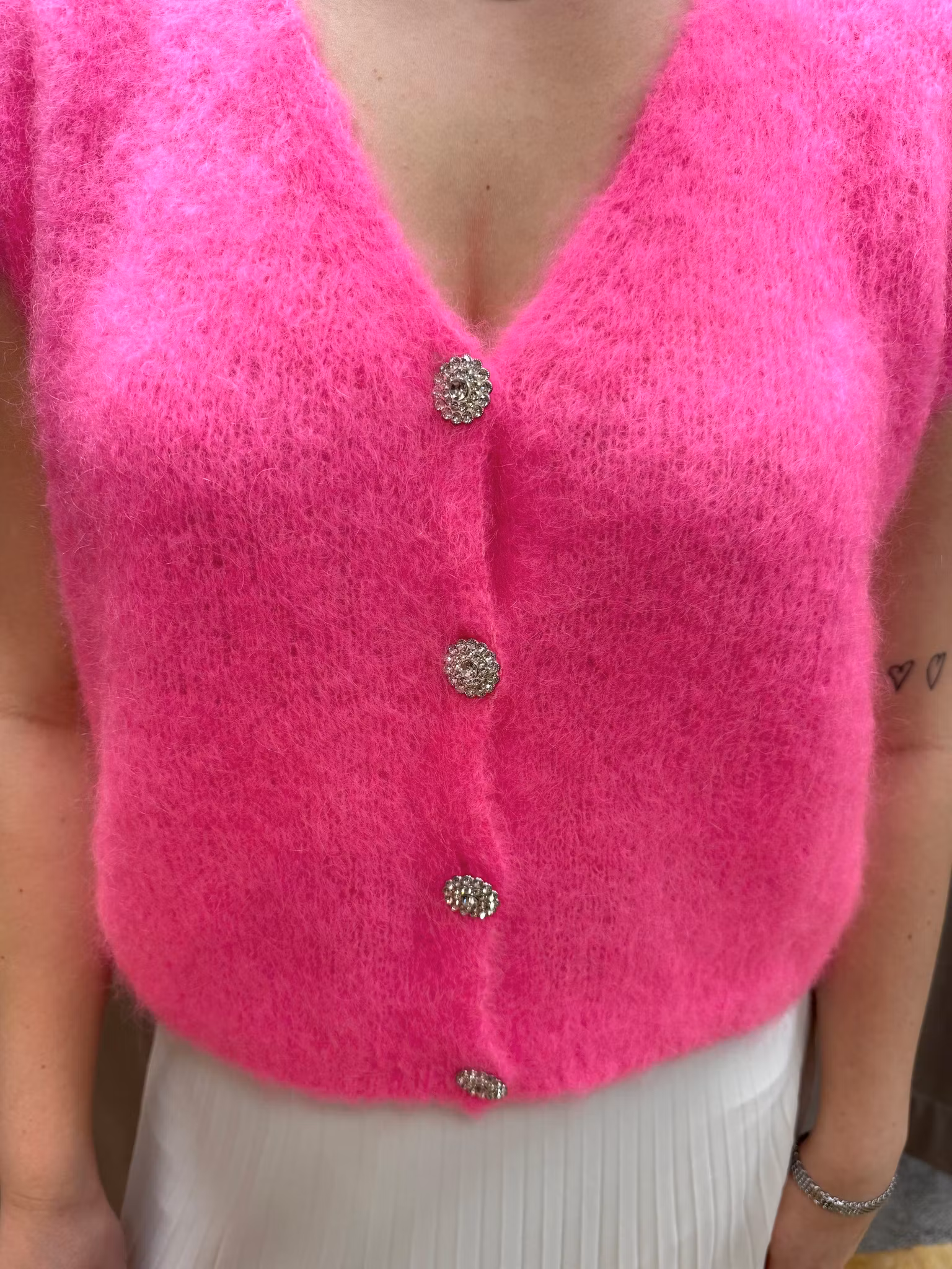 Underbar Mohairväst med Exklusiva Silverknappar och Strasstenar – Perfekt för Alla Säsonger i många härliga färger.