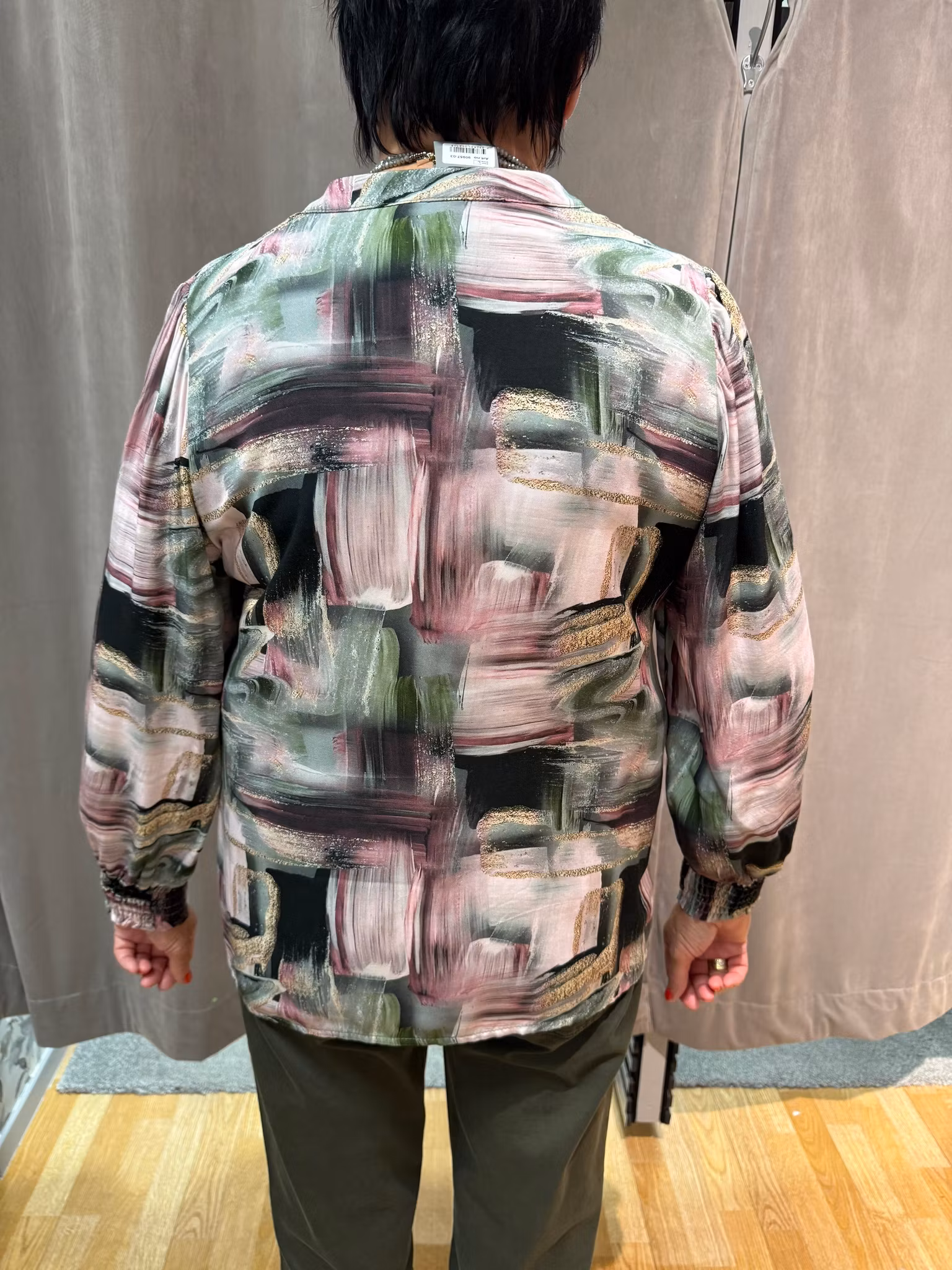 Stilsäker blus i mjuk, vävd kvalitet med matt yta och fint fall. Konstnärligt mönster i toner av rosa, grönt och svart. Rund hals med liten ståkrage och kort knappslå framtill. Smockade ärmslut och rak, lätt ledig passform som är lika fin instoppad som utanför byxlinningen. Perfekt till både vardag och fest.