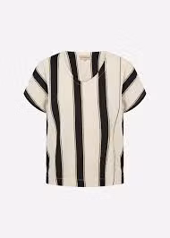 Stilren och luftig topp i ett tidlöst randigt mönster. Modellen har en avslappnad passform med korta ärmar och en klassisk rund halsringning, vilket ger en bekväm och smickrande silhuett.