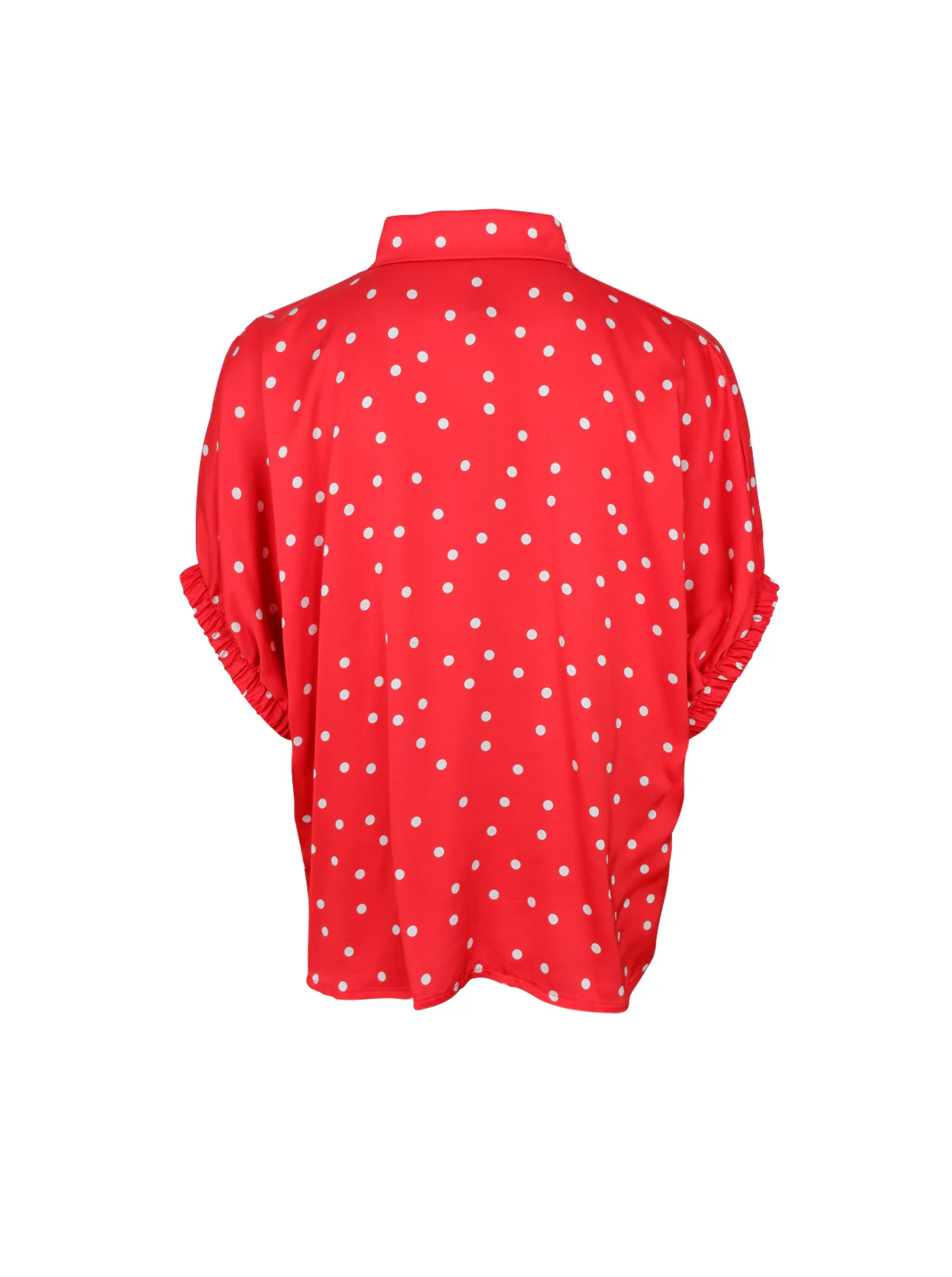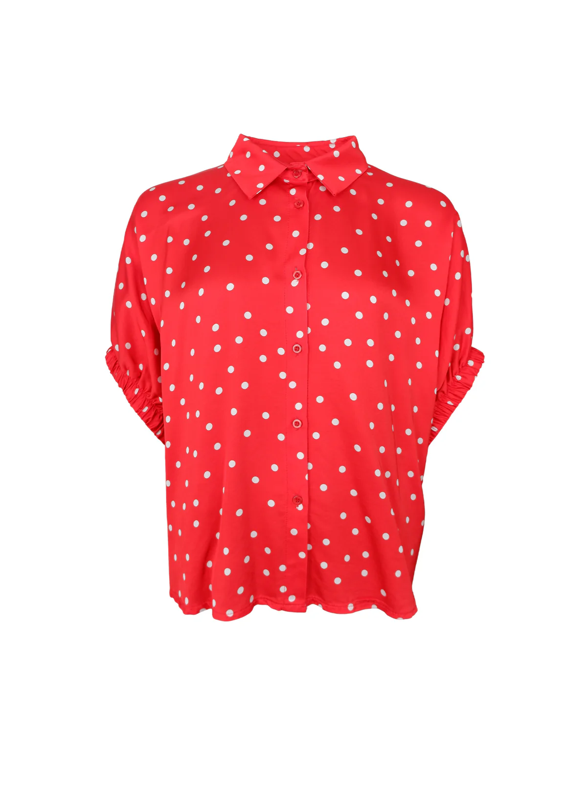 Mabel-blusen är en lätt och bekväm skjortblus i Onesize med en elegant look. Den har en avslappnad passform, korta ärmar med lätt rynk samt en klassisk skjortkrage. Det mjuka viskostyget faller vackert och ger en skön känsla hela dagen, medan prickmönstret skapar ett trendigt och stilfullt uttryck.