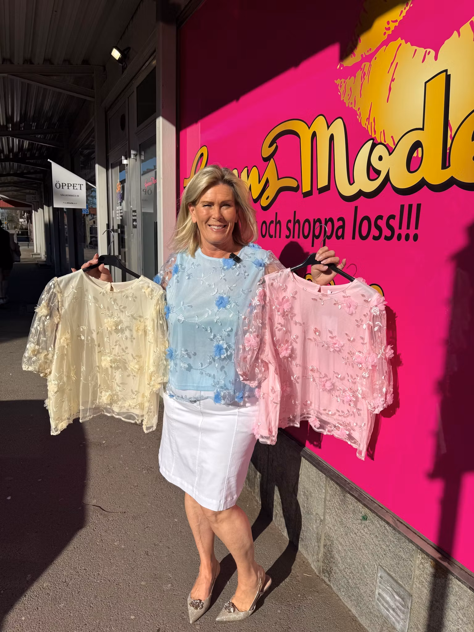 Rosa topp med 3D blommor 599 kr Storlek XS S M L XL I lager. Lägg i korgen Lagersaldo: Artikelnummer: 2105 Leverantör: Sisters Point Produktbeskrivning 100% polyesterModellen är 172cm och bär storlek L.
