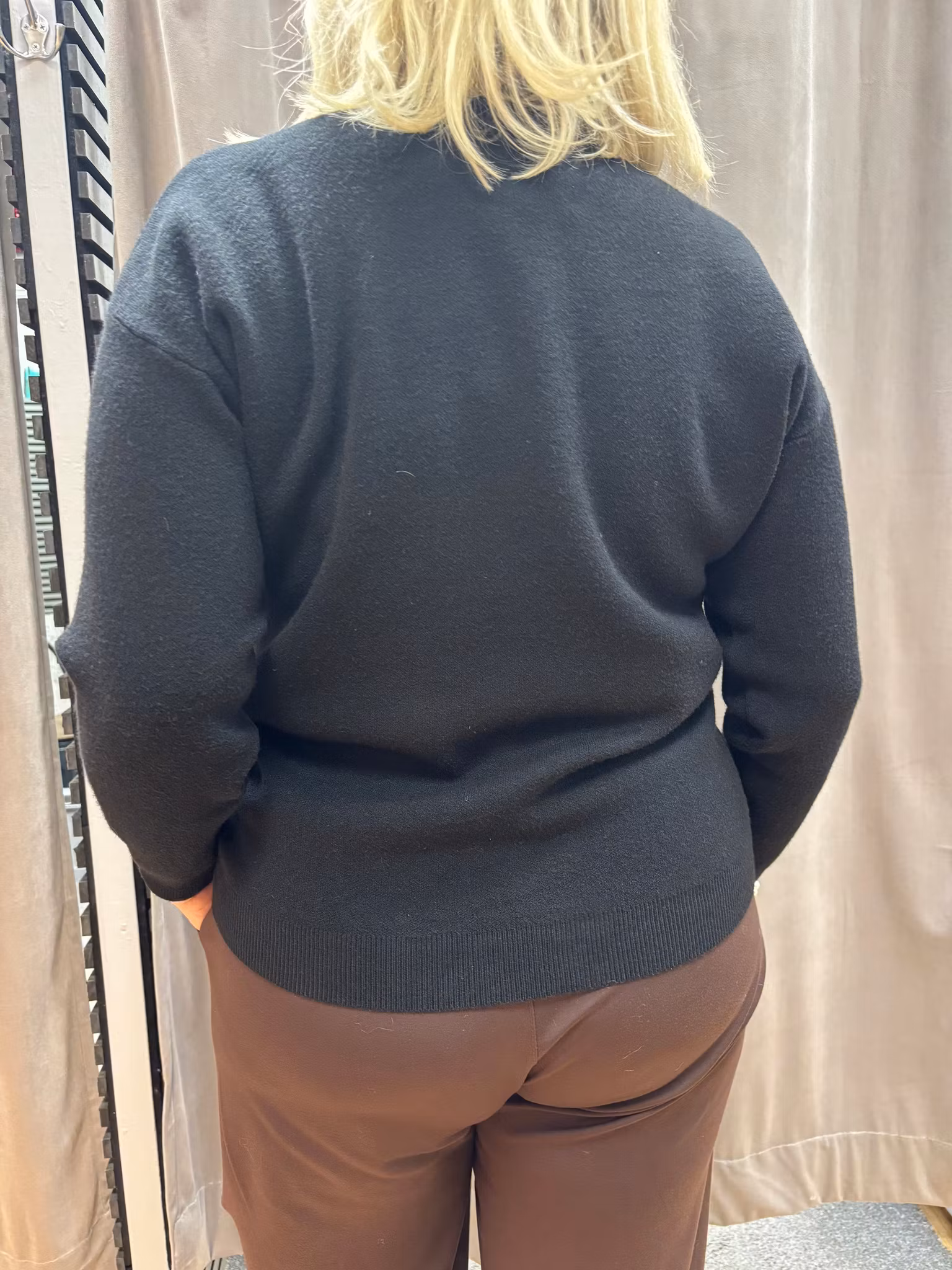 Stickad tröja med ett dekorativt nallemotiv framtill, där olika strukturer och detaljer skapar ett lekfullt och exklusivt uttryck. Nallen har både broderi, stickade inslag och en mjuk scarf som ger designen ett tredimensionellt och charmigt utseende. Tröjan har en högre halsringning och en behaglig passform som gör den lätt att bära både till vardags och som en rolig accent i en mer dressad outfit. Mjuka muddar vid ärmslut och nederkant ger en fin form och ökad komfort.