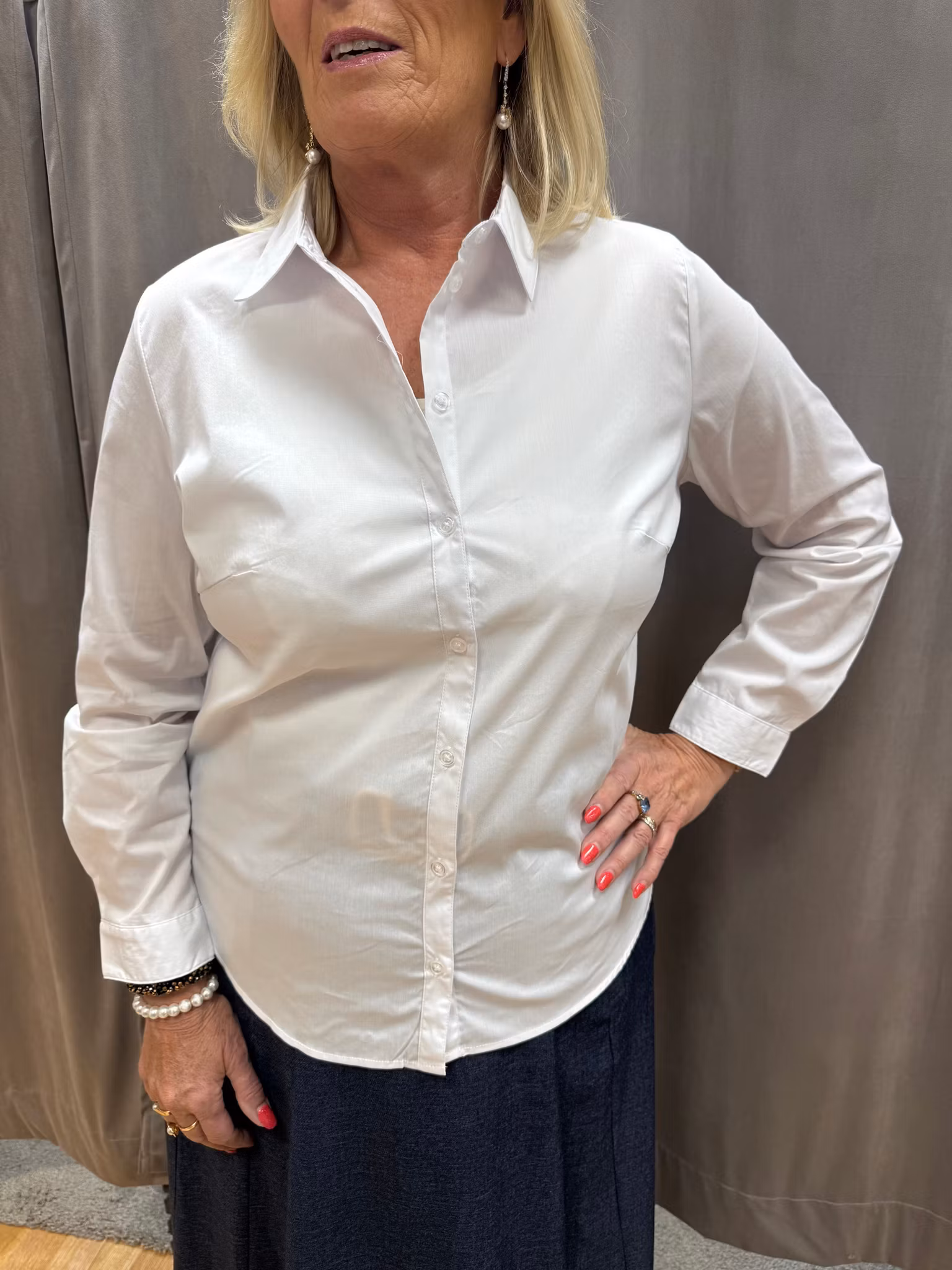 En stilren och välsittande vit skjorta som aldrig går ur tiden. Den klassiska designen gör den lika självklar på kontoret som till mer avslappnade tillfällen. En perfekt bas i garderoben som enkelt kan stylas upp eller ner.