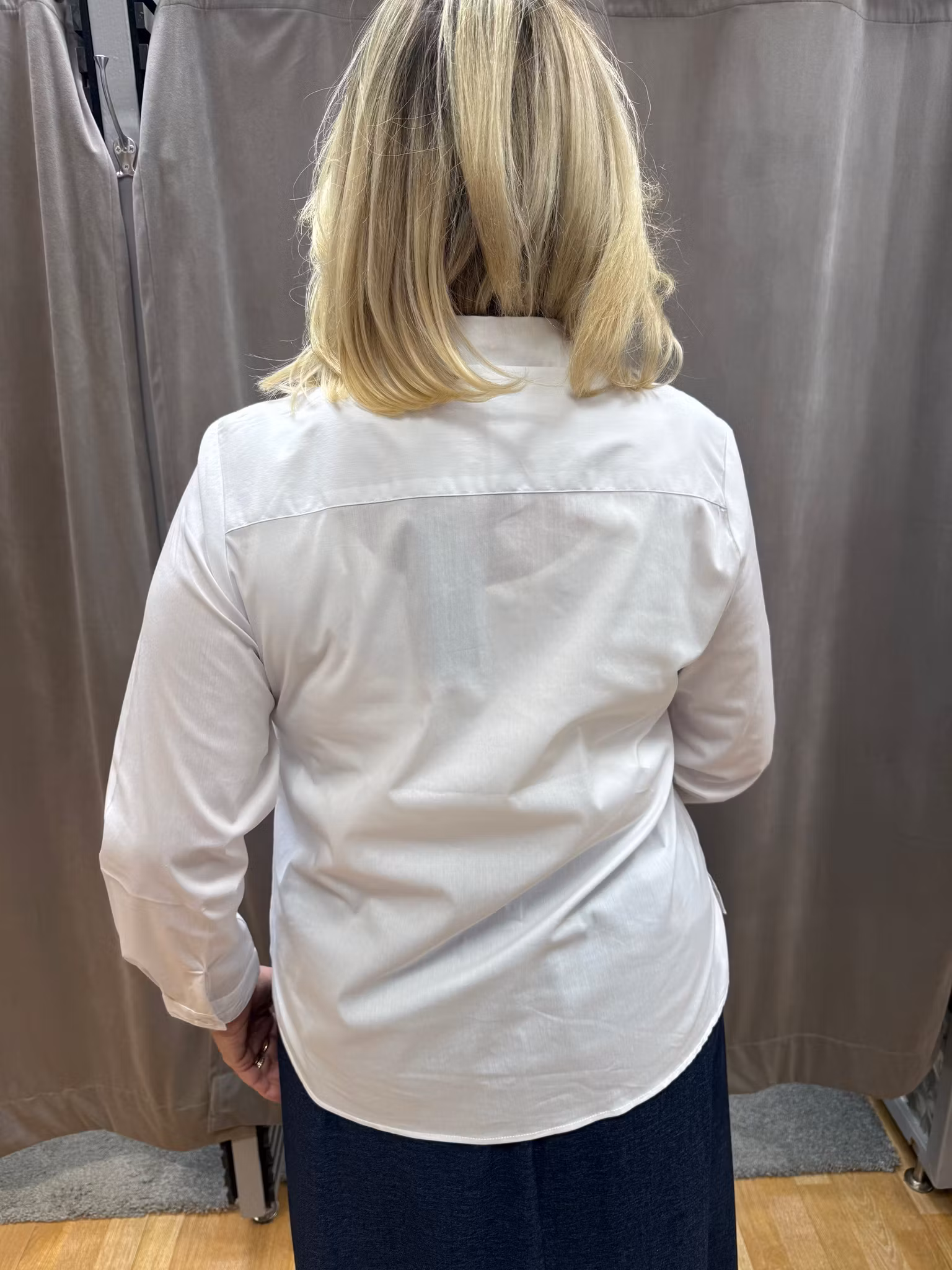 Skjortan har krage, knäppning framtill och en smickrande passform som följer kroppen utan att sitta för tajt. Den mjuka och följsamma kvaliteten ger en bekväm känsla hela dagen.