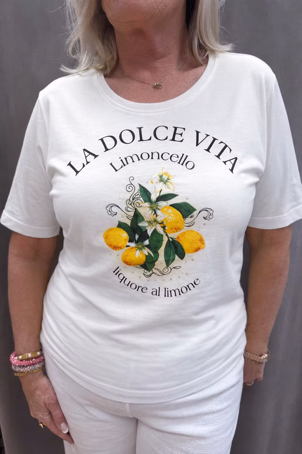 Vit La Dolce Vita t-shirt 399 kr Storlek S M L XL XXL I lager. Lägg i korgen Lagersaldo: Artikelnummer: 1822 Leverantör: M.X.O Produktbeskrivning 95% bomull5% elastan