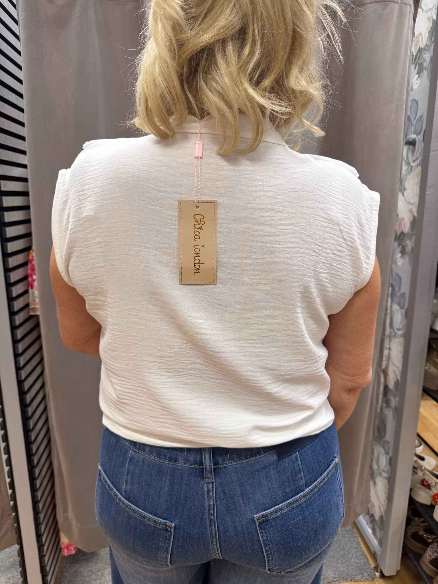 Den ärmlösa designen gör linnet perfekt för varmare dagar och lätt att matcha med både jeans, kjol eller kostymbyxor. Ett mångsidigt plagg som passar lika bra till vardag som till festligare tillfällen.