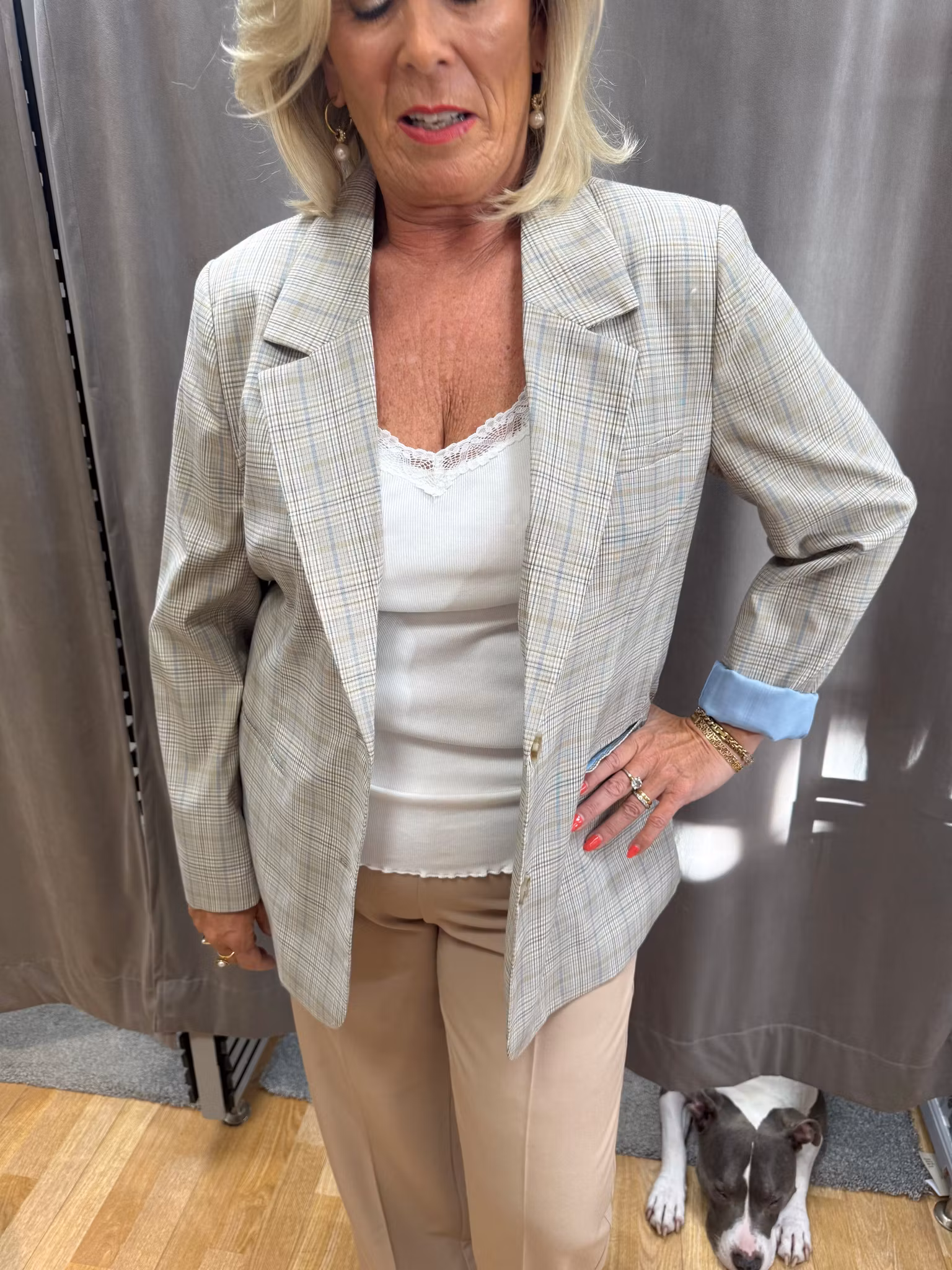 Beige rutig kavaj med ljusblått foder 1 499 kr Storlek 36 38 40 42 44 46 I lager. Lägg i korgen Lagersaldo: Artikelnummer: 1012420 Leverantör: 2-Biz Produktbeskrivning Material: Yttertyg 65% polyester, 33% viskos, 2% elastan. Foder 100% polyester.