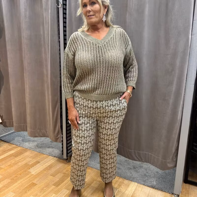 Gröna mönstrade byxor 1 249 kr Storlek 36 38 40 42 44 46 48 I lager. Lägg i korgen Lagersaldo: Artikelnummer: 12 Produktbeskrivning Ett par gröna mönstrade byxor i normal passform och ankellängd.Modellen är 172 cm och bär storlek 44.Material: 97% bomull, 3% elastan