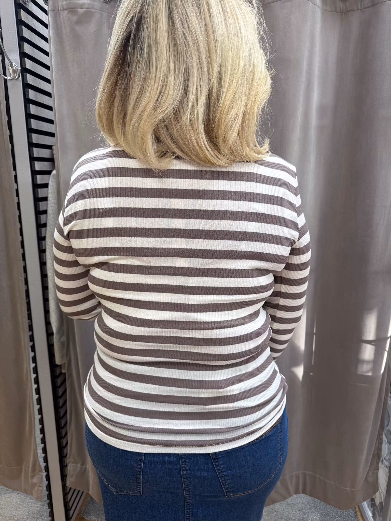 Randig ribbad topp med lång ärm taupe/offwhite 399 kr Storlek S/M L/XL I lager. Lägg i korgen Lagersaldo: Artikelnummer: 7702-BLÅ Leverantör: Marta Du Chateau Produktbeskrivning Material: 97% viskos, 3% elastan